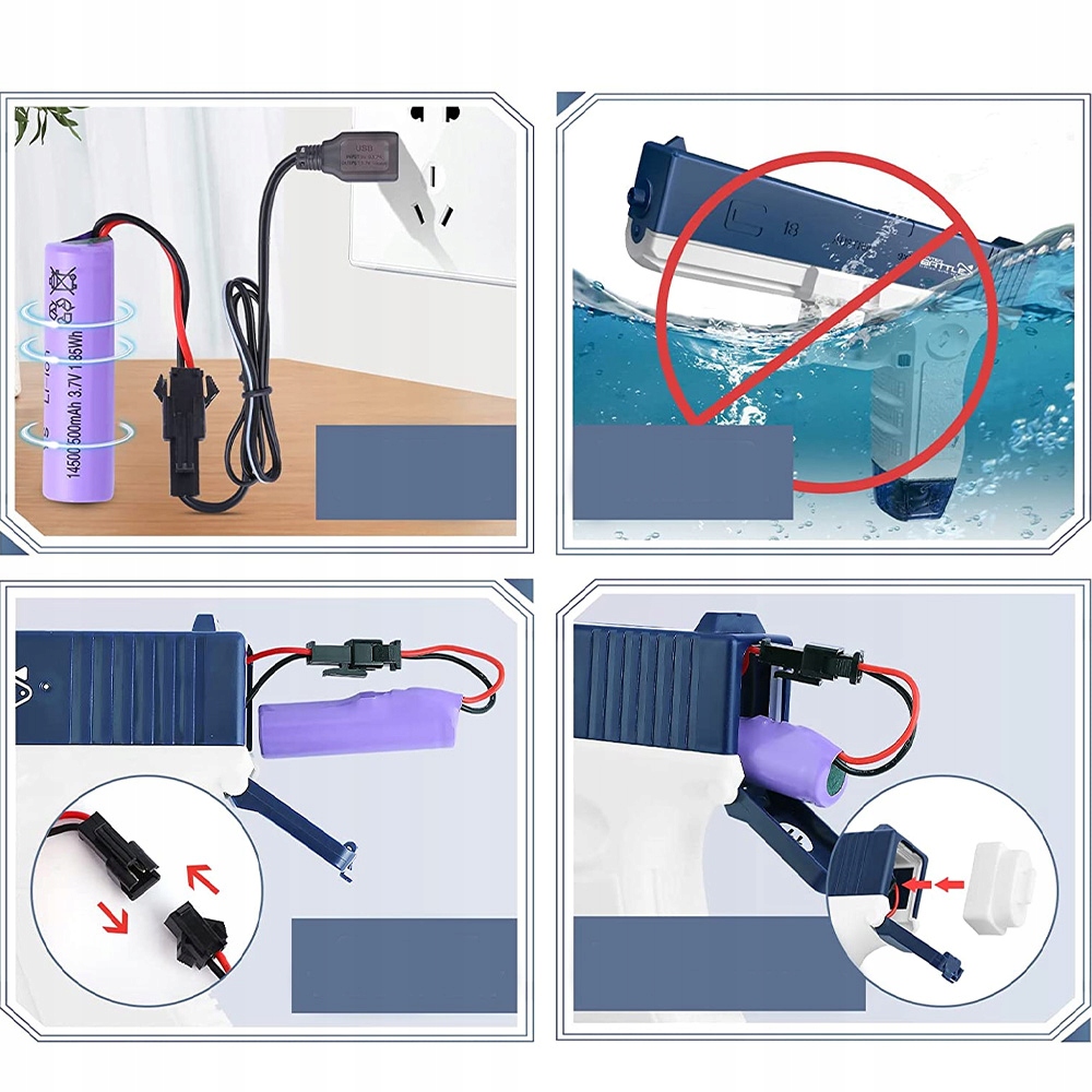 Електрична водна пістолет виготовлений з високоякісної пластику ABS, що відповідає стандартам якості іграшок. Акумулятор електричної водної зброї підтримує зарядку USB і може бути використана постійно, завдяки якому вона легко допоможе вам стати королем заходу, перемогти інших зловмисників і насолоджуватися всім літом! 4 (ПРИМІТКА: Водяний пістолет оснащений двома водонепроникними шарами, які можна занурювати у воду на короткий час. Однак його не слід занурювати протягом тривалого часу! Щоб уникнути пошкодження електронних елементів)
