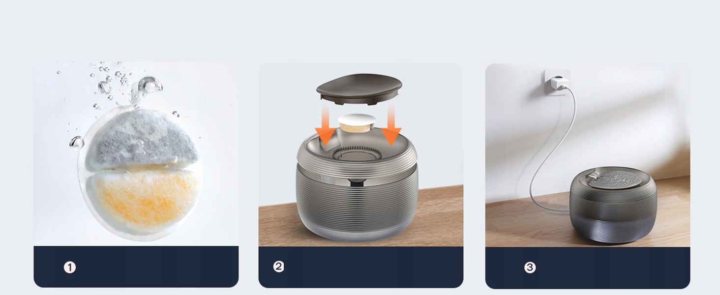 В диспенсері води для домашніх тварин використовується надзвичайно тихий насос,який створює шум менше 20 дБ під час роботи, особливо вночіі не порушує спокою. Навіть непосидючі коти повинні насолоджуватися питтям із цього фонтану.