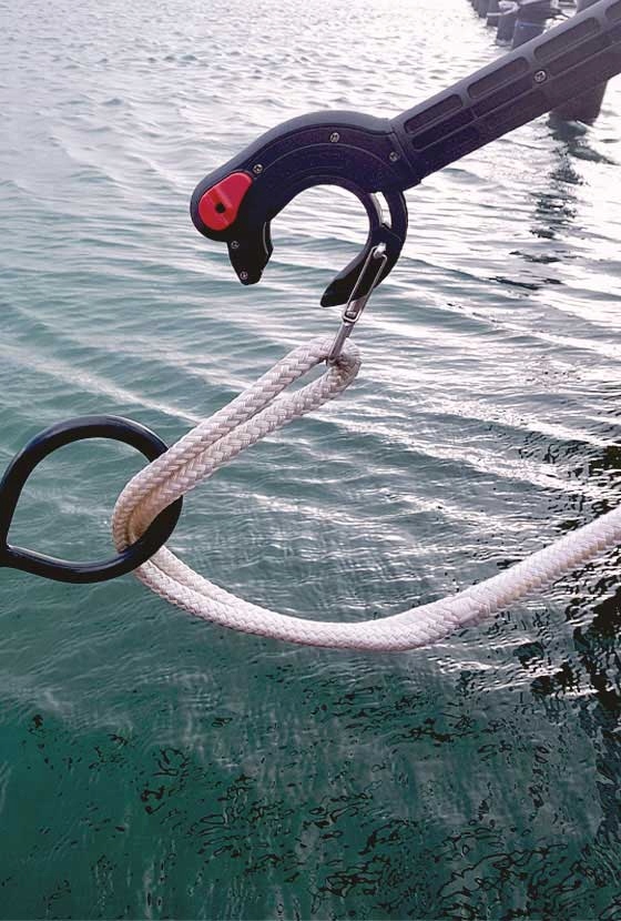 Автоматичний босоніж гачок та матор допомагає перетягнути мотузку причавця через вухо або мостить пило, з одним потягом або штовханням. Він забезпечує безпечний та комфортний причал до буя, усуваючи необхідність нахилитися за межі колоди. Hook & Moor, із заблокованим механізмом, можна використовувати як стандартний босоніж. Для його виробництва використовувались матеріали найвищої якості, такі як скловолокна, алюміній та нержавіюча сталь. Телескопічний дизайн полегшує зберігання, а гумова ручка забезпечує стабільність зчеплення. За бажанням ви можете придбати оригінальну ручку Hook & Moor для монтажу або стіни. Доступно в три довжини 180, 250 та 320 див.