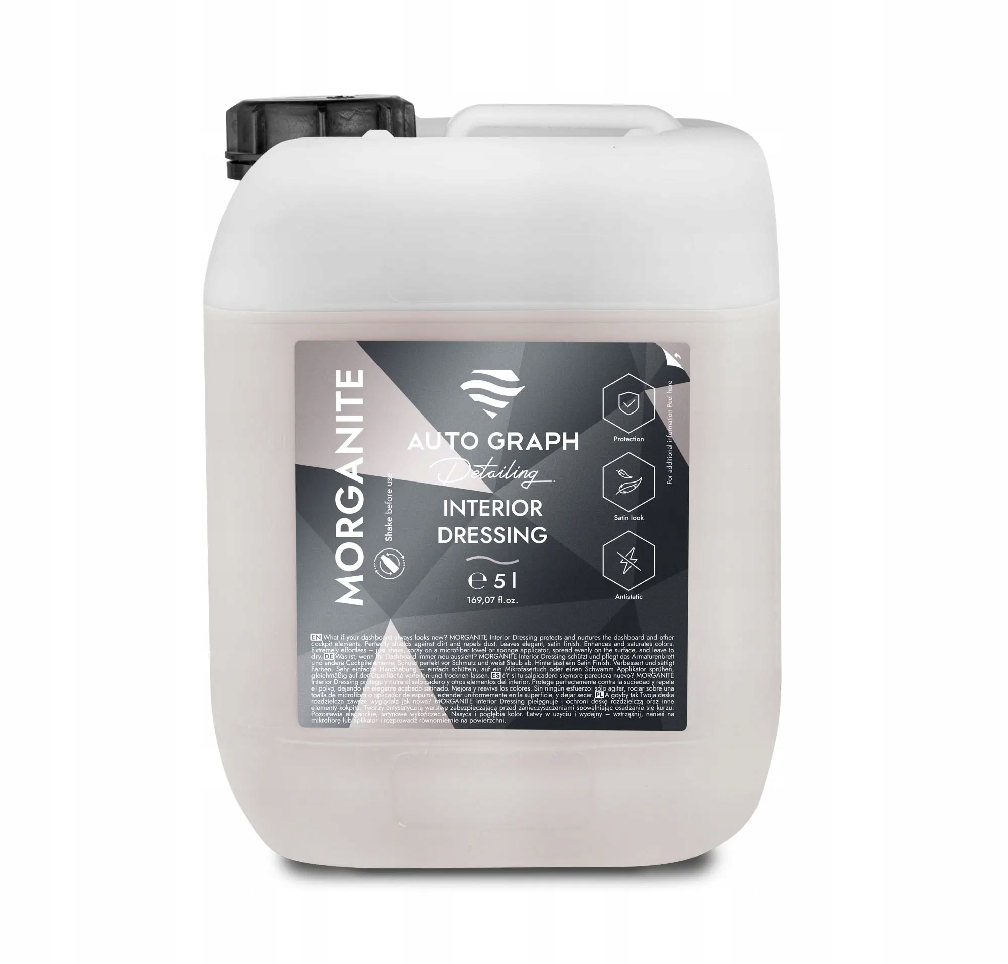 Автоматичний графік Morganite - і якщо ваша інформаційна панель завжди виглядала як нова? Морганіт в інтер'єрі опікується та захищає приладову панель та інші елементи кабіни. Це створює антистатичний шар, що захищає від забруднення, уповільнює пил. Це залишає елегантну атласну обробку. Він насичує і поглиблює колір. Простий у використанні та ефективні - струсіть, нанесіть на мікрофібри або аплікатор і рівномірно розкладіть на поверхню.