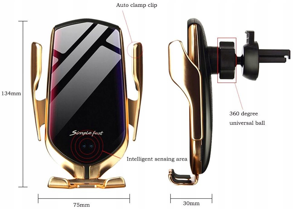 У тримач є вбудований індуктивний зарядний пристрій потужністю 10 Вт, сумісний із технологією швидкого заряджання QI/QC.