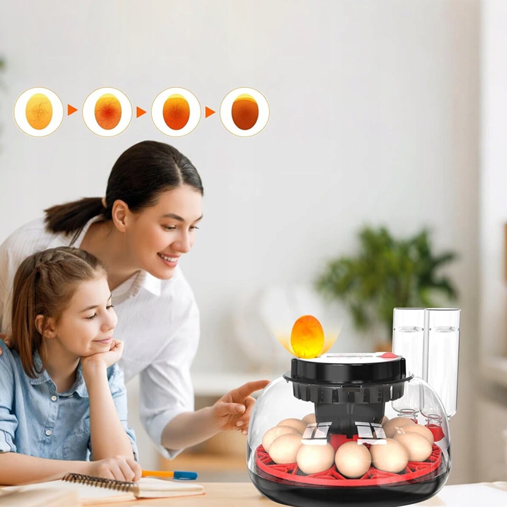 Огляд на 360°: прозора кришка інкубатора на 360° забезпечує чіткий огляд процесу виведення, дозволяючи вам відчути диво життя зблизька.