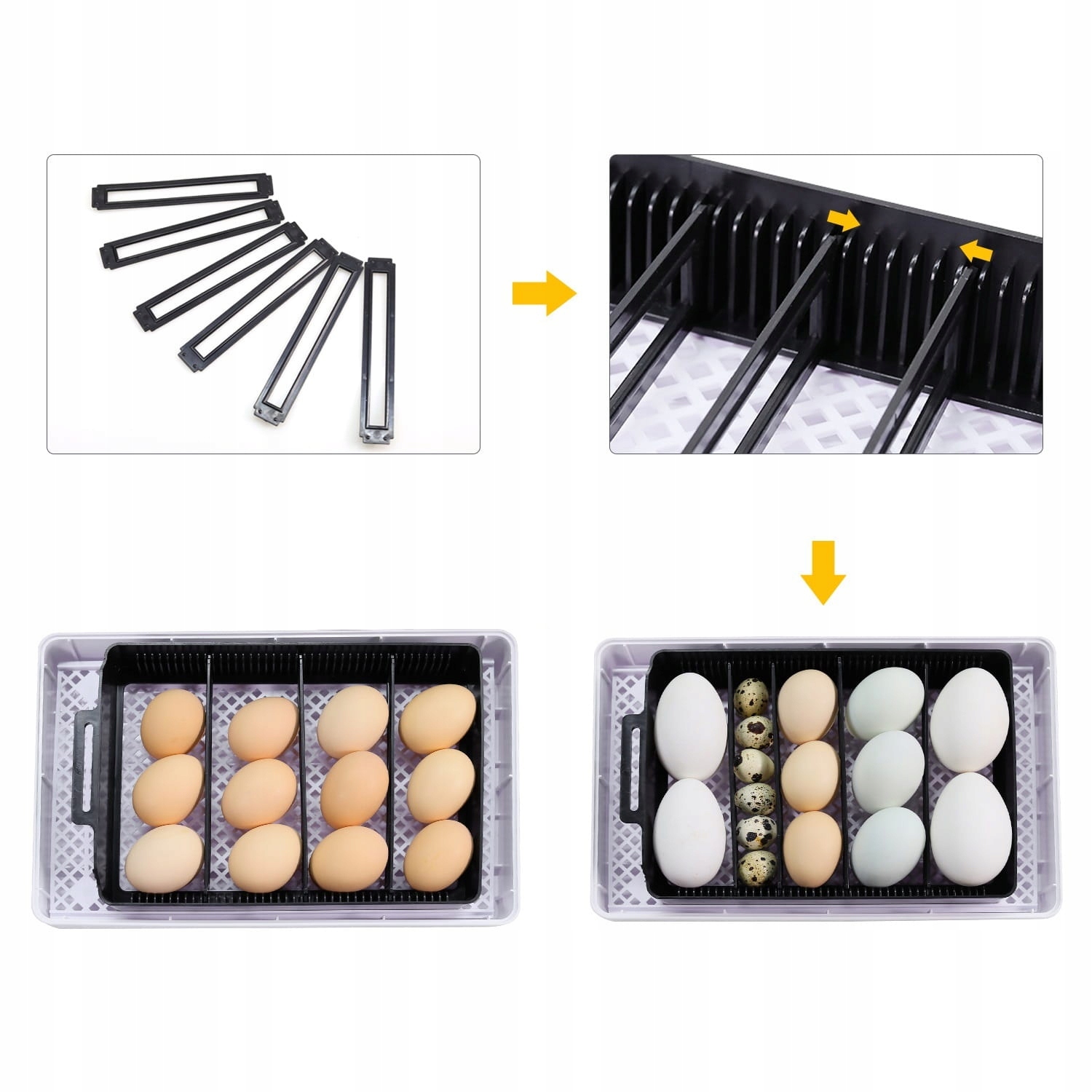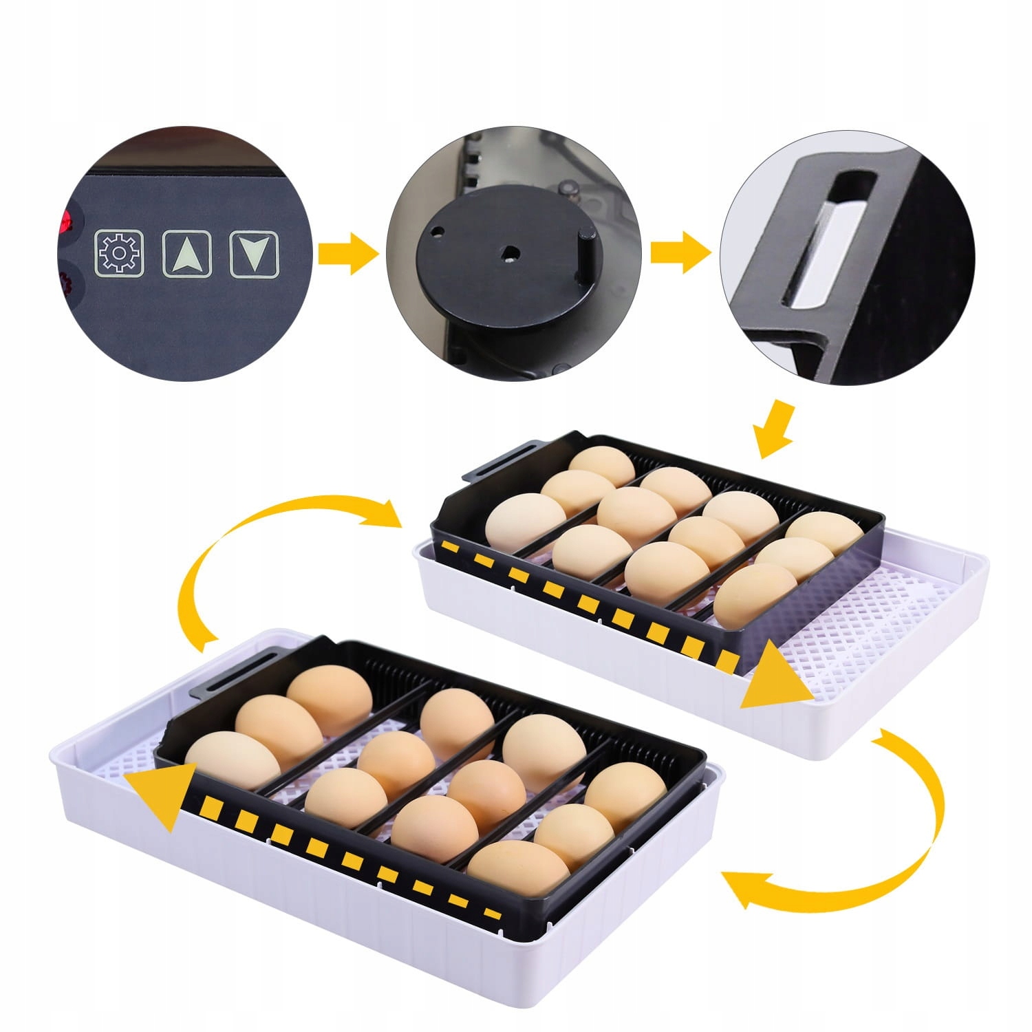 Просто увімкніть джерело живлення, налийте воду у відповідний канал всередині інкубатора та покладіть яйця на лоток.