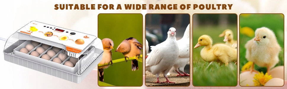 Інкубатор автоматично обертається, щоб запобігти ембріонам, щоб запобігти ембріонам до шкаралупи і нагрівати яйця рівномірно, тим самим покращуючи швидкість висиджування.