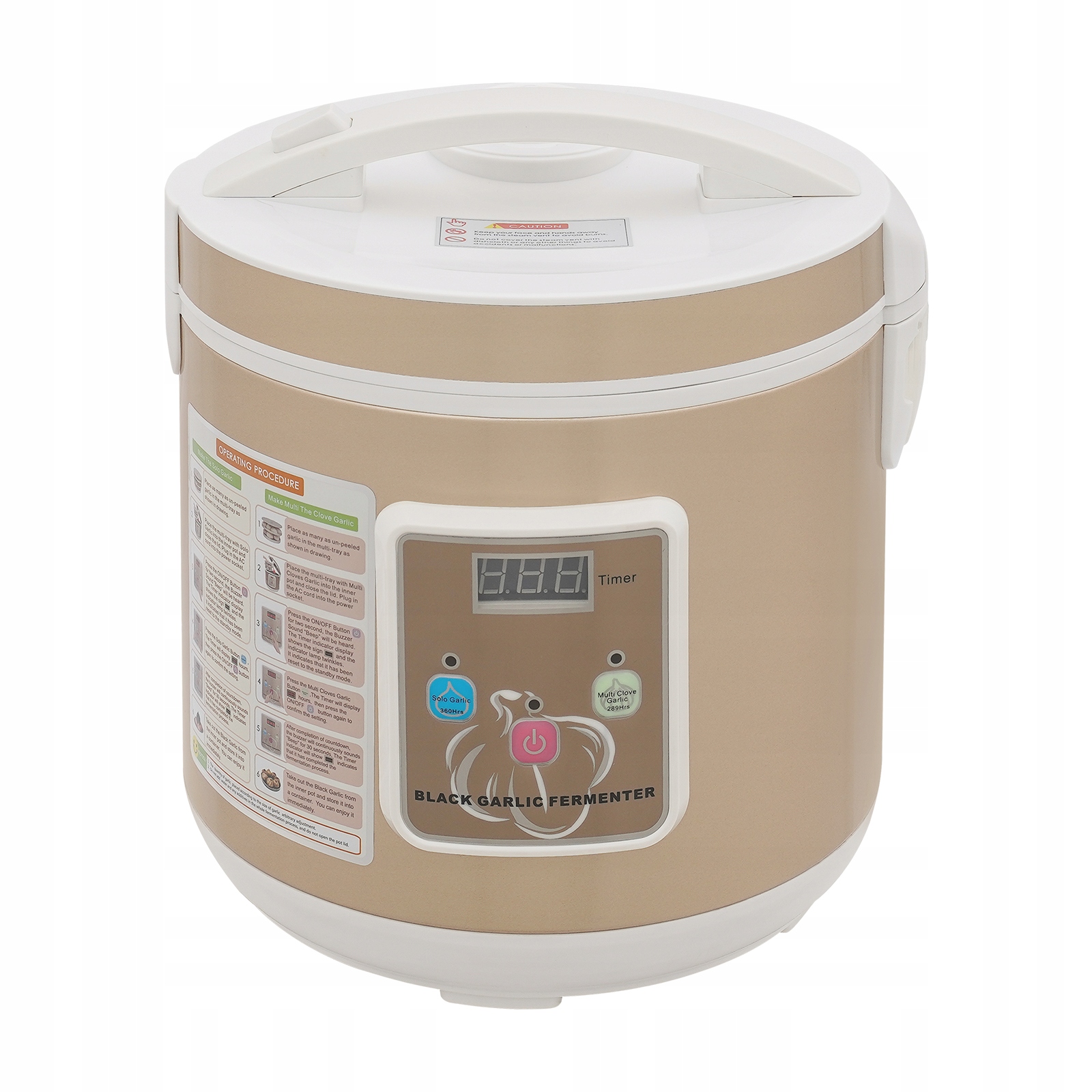 - Функціональність, орієнтована на користувача:двошарова ізоляційна кришка з випускним отвором для пари ефективно регулює внутрішній тиск, підвищуючи ефективність бродіння. Знімна коробка для збору води спрощує прибирання, а висувна ручка дозволяє легко вийняти решітку для часнику.