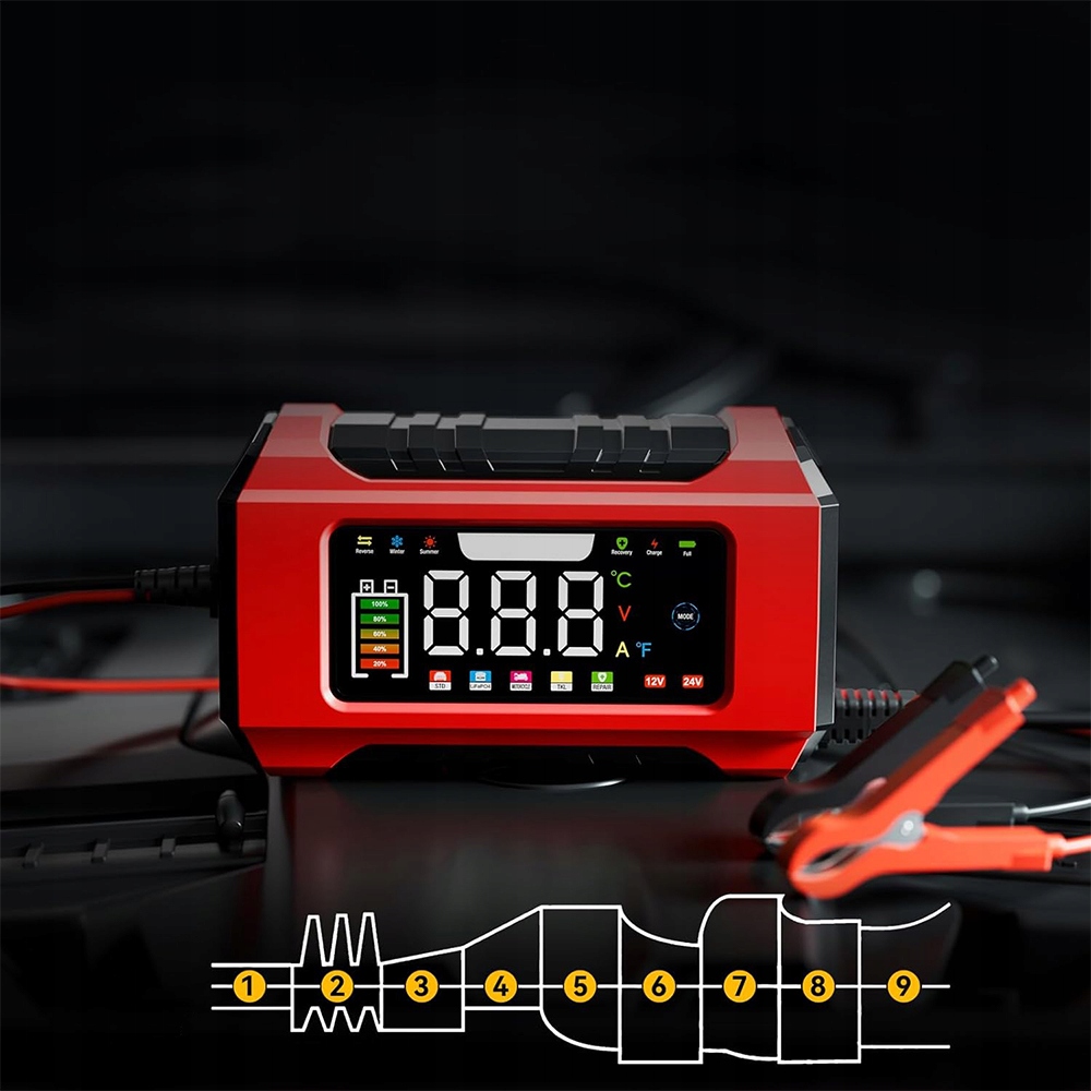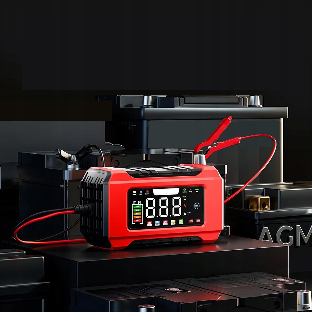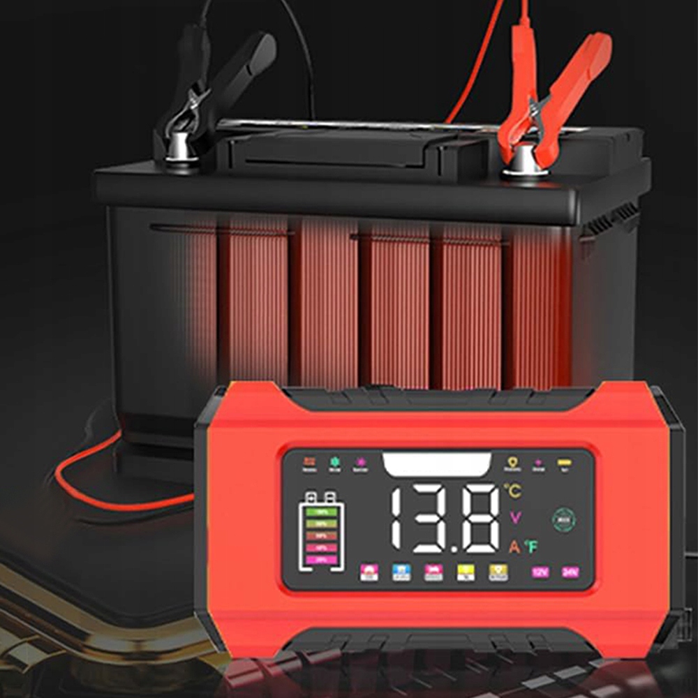 АВТОМАТИЧНИЙ ІНТЕЛЕКТУАЛЬНИЙ ВИПРЯМНЮВАЧ ЧЕРВОНИЙ ЗАРЯДНИЙ ПРИСТРІЙ AGM STD GEL БАТАРЕЯ
