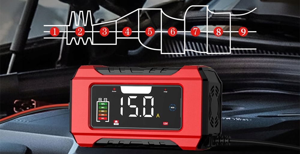 🔋 9-ступінчастий зарядний пристрій для технічного обслуговування акумулятора
