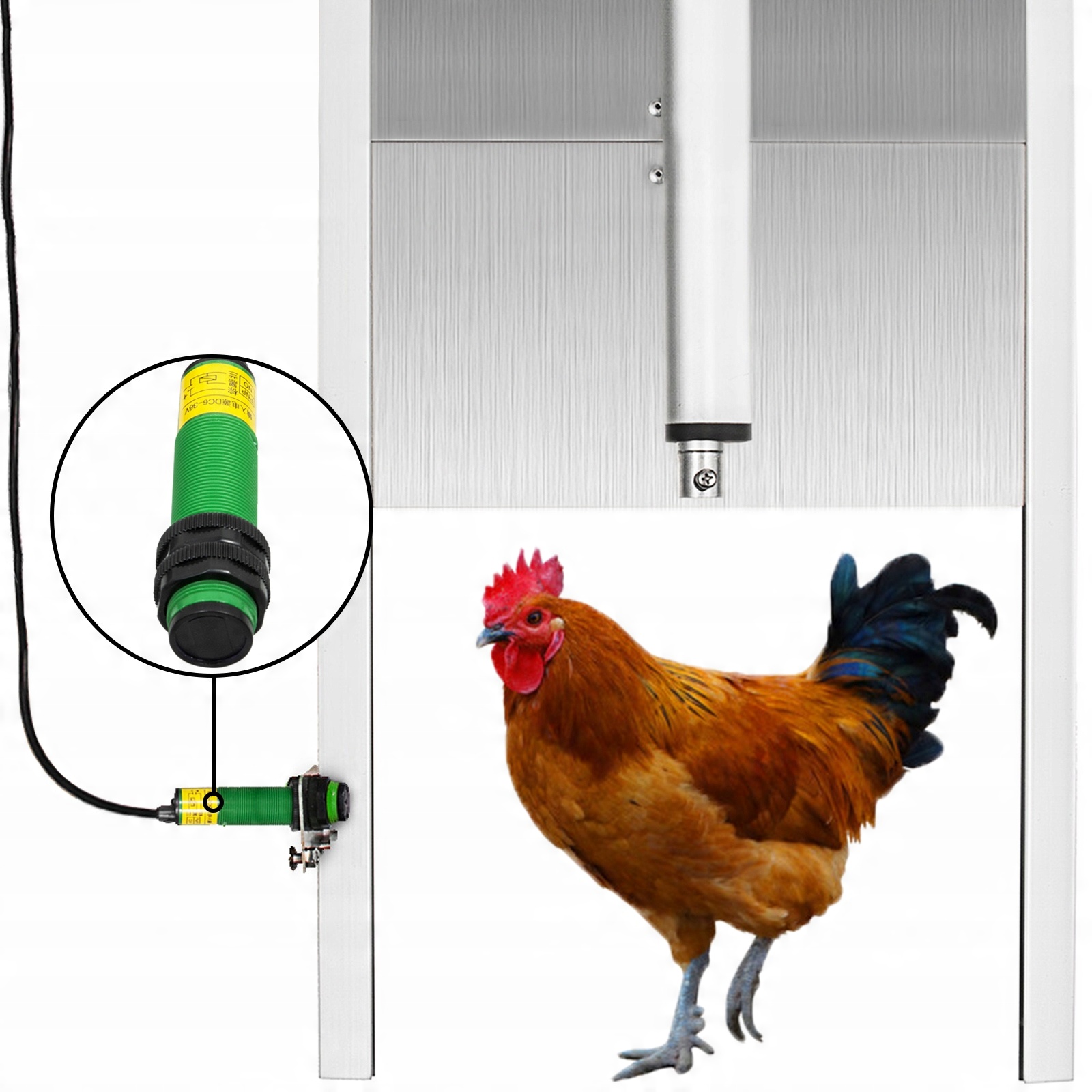 Ці автоматичні двері для курятника оснащені інфрачервоною індукцією. Двигун автоматично зупиняє двері, якщо півень стає на шляху.