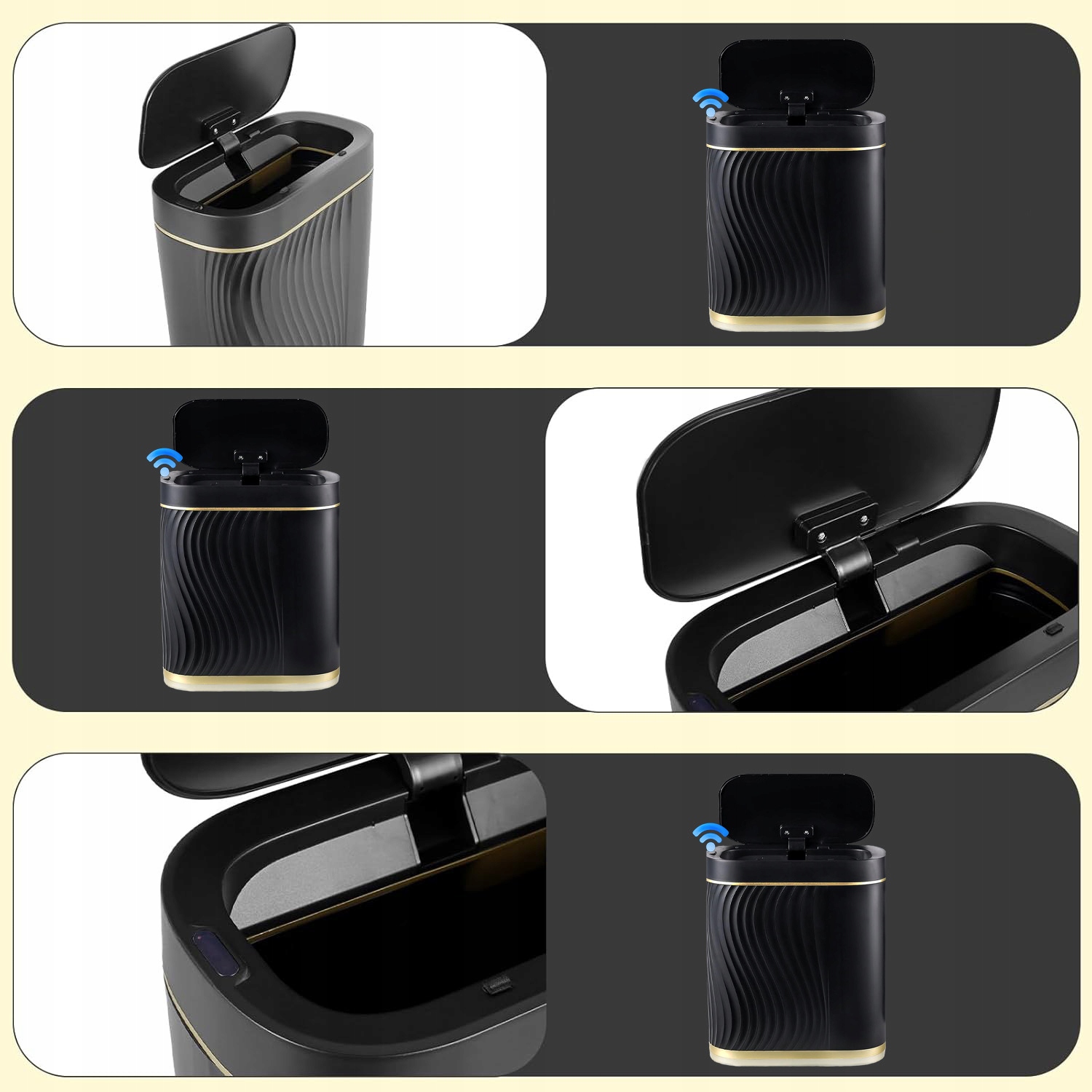 - ✨- використовує неконтактну інфрачервону технологію, яка автоматично виявляє та відкриває обкладинку, що полегшує її використання. Jest Wytrzymały, Trwały I ma gladką, łatwą w utrzymaniu powierzchnię. Otwarcie Pokrywy I obsługuje ręczne sterowanie przyciskami.