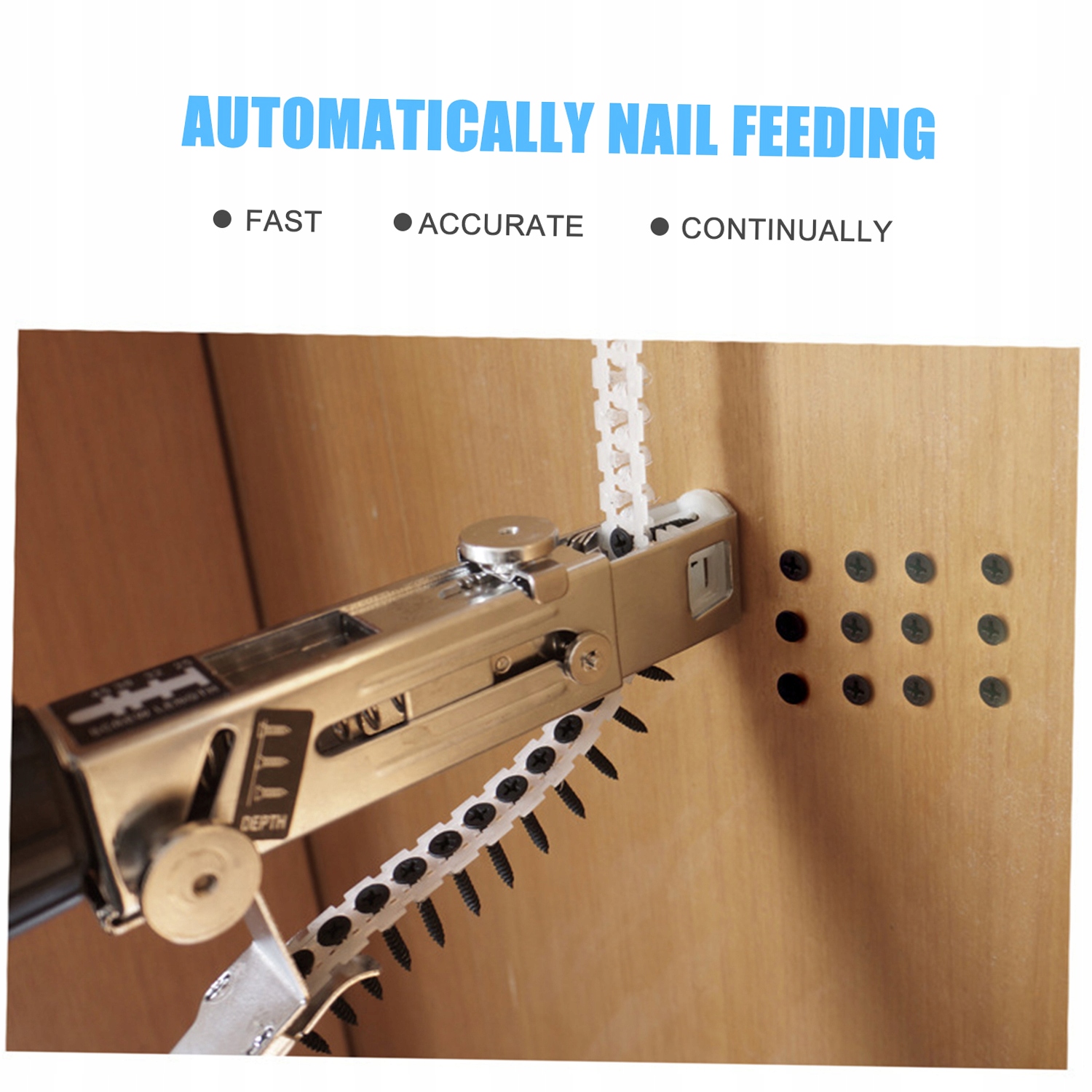 - Автоматичне подавання шурупів - автоматичний адаптер для пістолета з 50 гвинтами, який може швидко, безперервно та точно подавати цвяхи, легко керувати однією рукою.