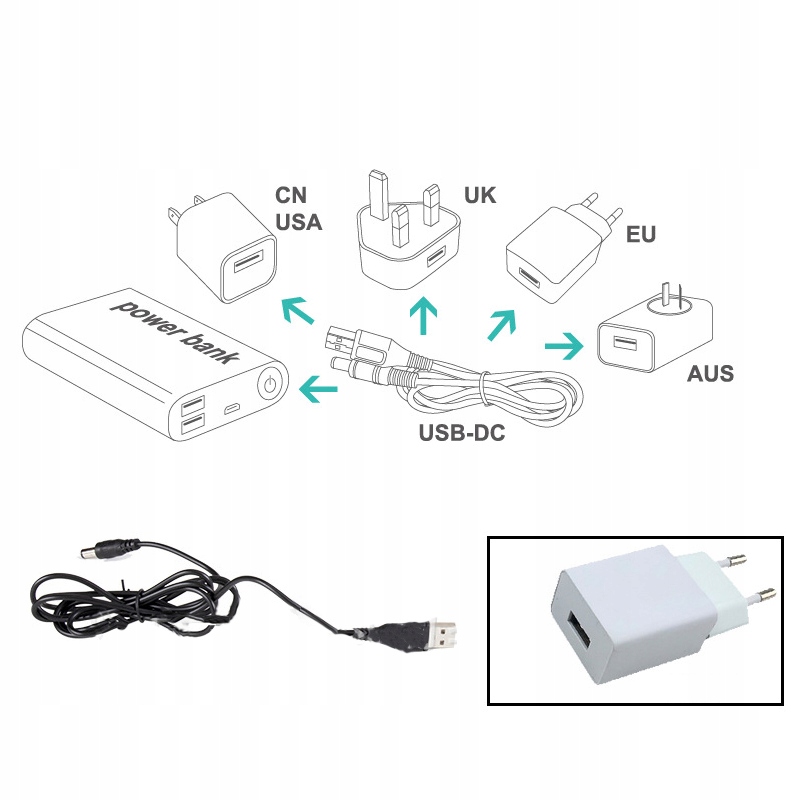 Список продуктів: з’єднувальний кабель USB і постійного струму, посібник користувача, скатертина кожен.