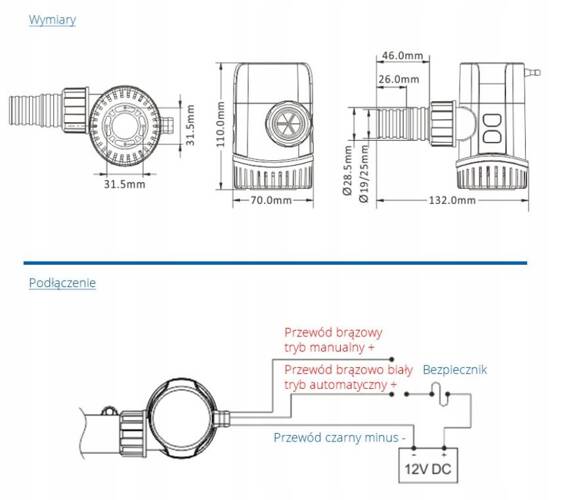 - Напруга 12V < Li> Ефективність - 45 л/хв (800GPH)