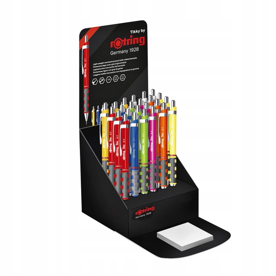 - Стабільний графітовий посібник заважає йому розбиватися, дозволяє чудові видимість паперу при малюваннях за допомогою ліній та шаблонів. Автоматичний гнилий Tikky доступний у 4 розмірах: 0,35; 0,5; 0,7 і 1,0.