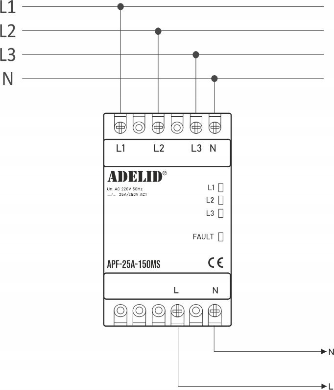 - У разі одночасної відсутності правильної напруги у всіх 3 фази (L1, L2, L3), засвітиться світлодіод FAULT.