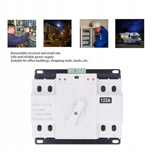 Автоматичний перемикач передачі змінного струму 230 В 2P 125 A Автоматичний мережевий перемикач ATS CB, аварійний струм, комутатор муніципального струму, USV, інвертор, сонячна 1>