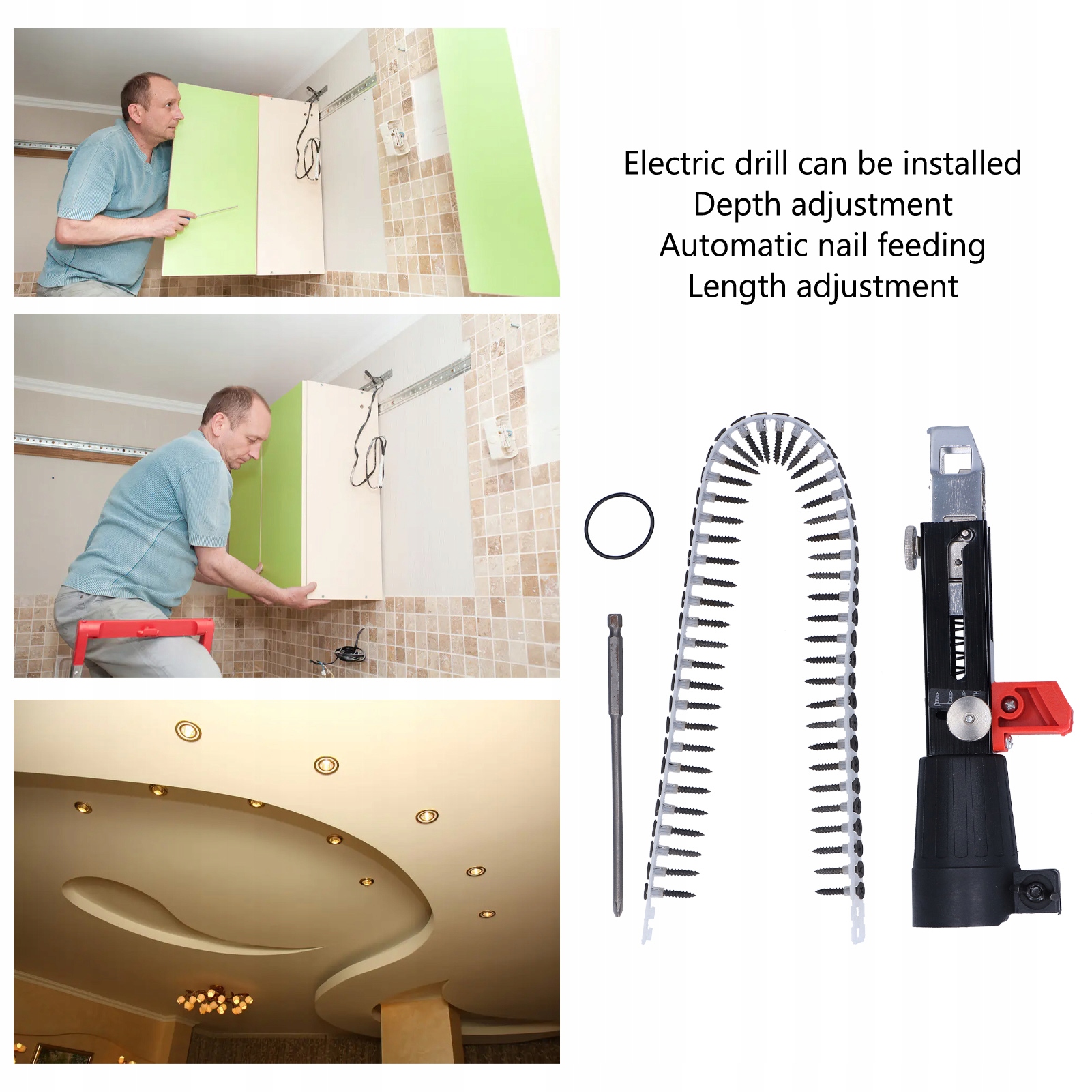 1. Автоматичне подавання цвяхів: адаптер ланцюгового пістолета для цвяхів забезпечує швидке, безперервне й точне подавання цвяхів за допомогою простої операції.