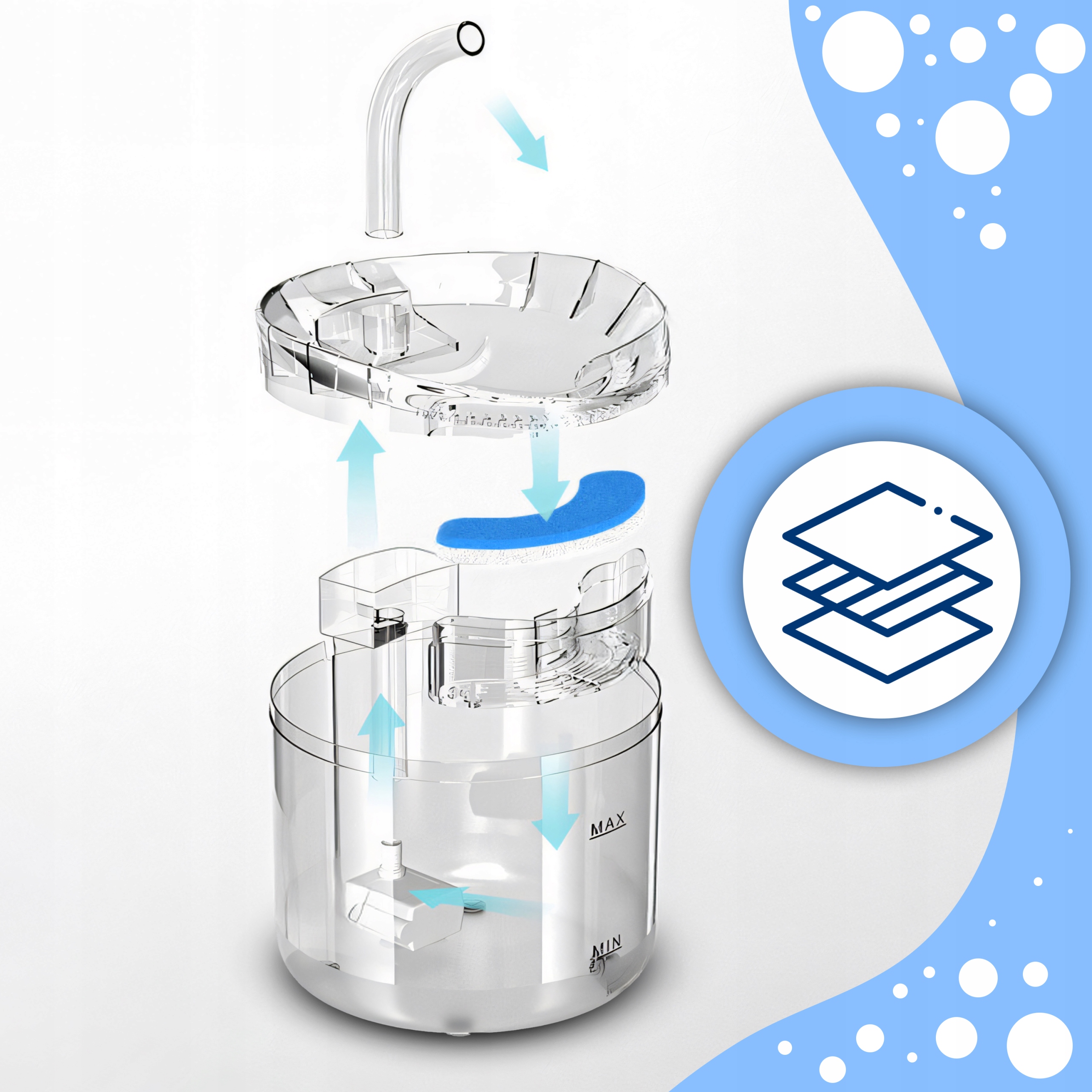 - Ідеальне рішення для тварин, які неохоче п'ють воду з традиційної миски. Завдяки фонтану вода постійно розповсюджується, що привертає увагу ПЕТ і заохочує його пити.