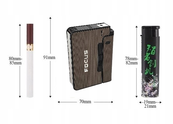 Портсигар сумісний зі стандартним сигарети та запальнички з розмірами, показаними на фото праворуч.