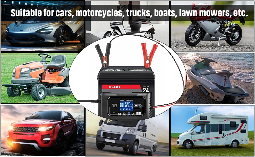 Універсальне використання: заряджає та підтримує в хорошому стані свинцево-кислотні акумулятори (AGM, GEL, EFB, SLA) і сучасні літієві акумулятори 12 В і 24 В LiFePO4.