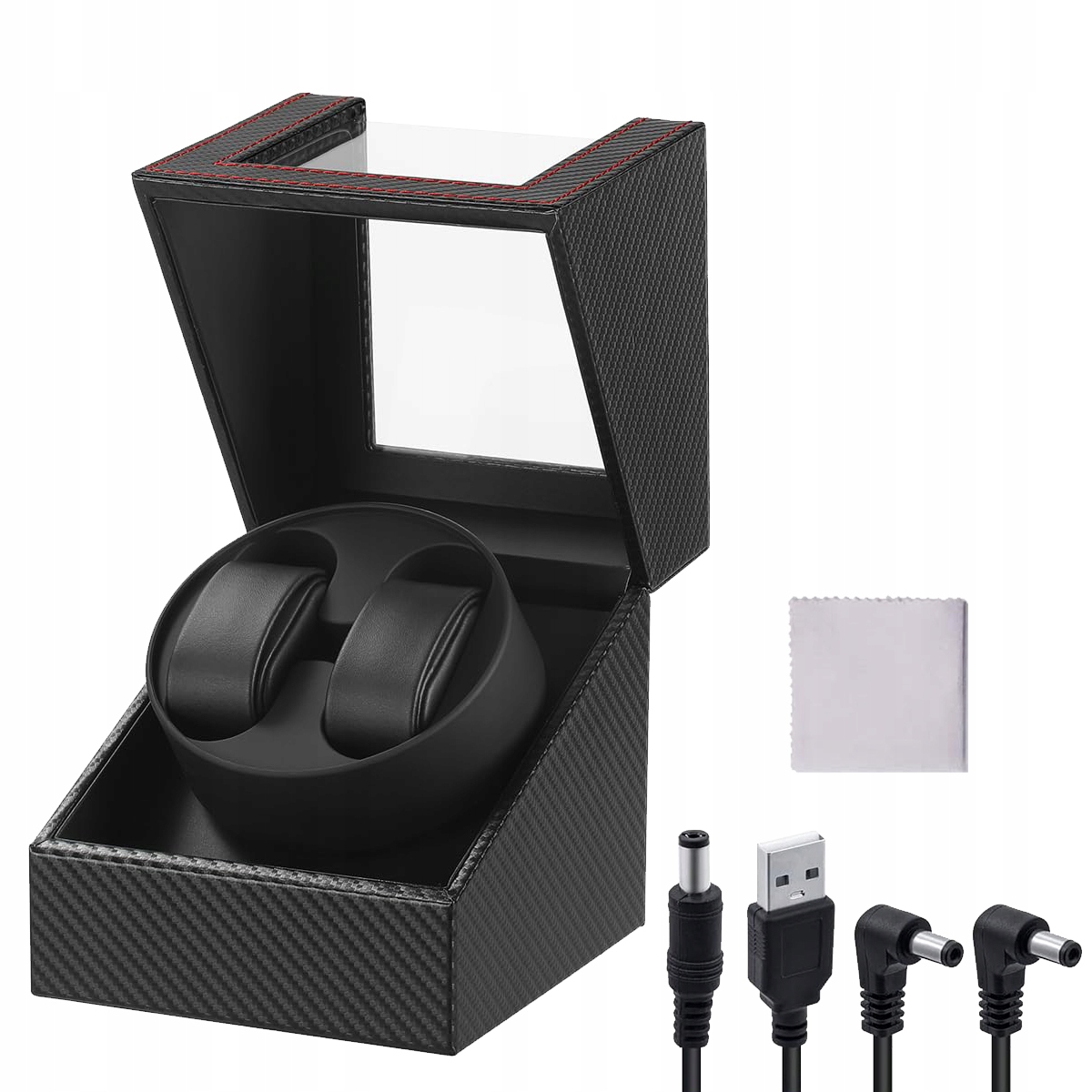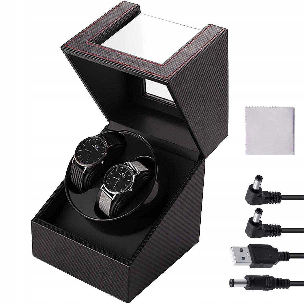 � -флаг годинники, виготовлені з синтетичної шкіри з прозорим акриловим вікном, м'яким фланелевим та вуглецевим волокном. Захистіть годинник від подряпин і зберігайте його функціональність. Додайте приємний акцент і прекрасний вигляд для цих вишуканих годинників годинників. Підходить для дисків діаметром менше 58 мм, товщина менше 28 мм і спостерігайте за окружністю від 180 мм до 210 мм. Щоб живити цей продукт, використовуйте джерело живлення для мобільного телефону (вихідна напруга: 3 v ~ 9 В). Ніколи не використовуйте живлення іншого електричного пристрою. Мовчазний двигун. Надзвичайно тихий під час роботи.