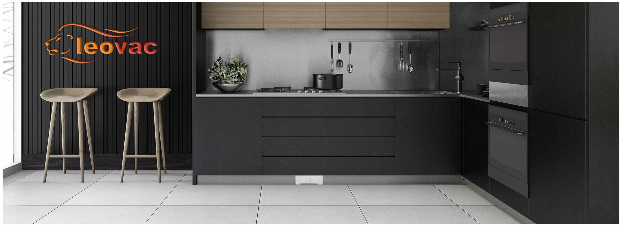 Елегантний корпус, дві висоти передньої панелі та єдиний, який пропонує легку можливість встановлення в плінтуси під шафами - ось головні переваги совок Leovac.
