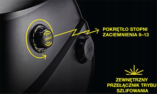 - Зовнішнє регулювання ступеня затемнення в діапазоні від DIN 9 до DIN13 та оптичного класу 1/1/1/2 . Затримку та чутливість можна регулювати зсередини.
