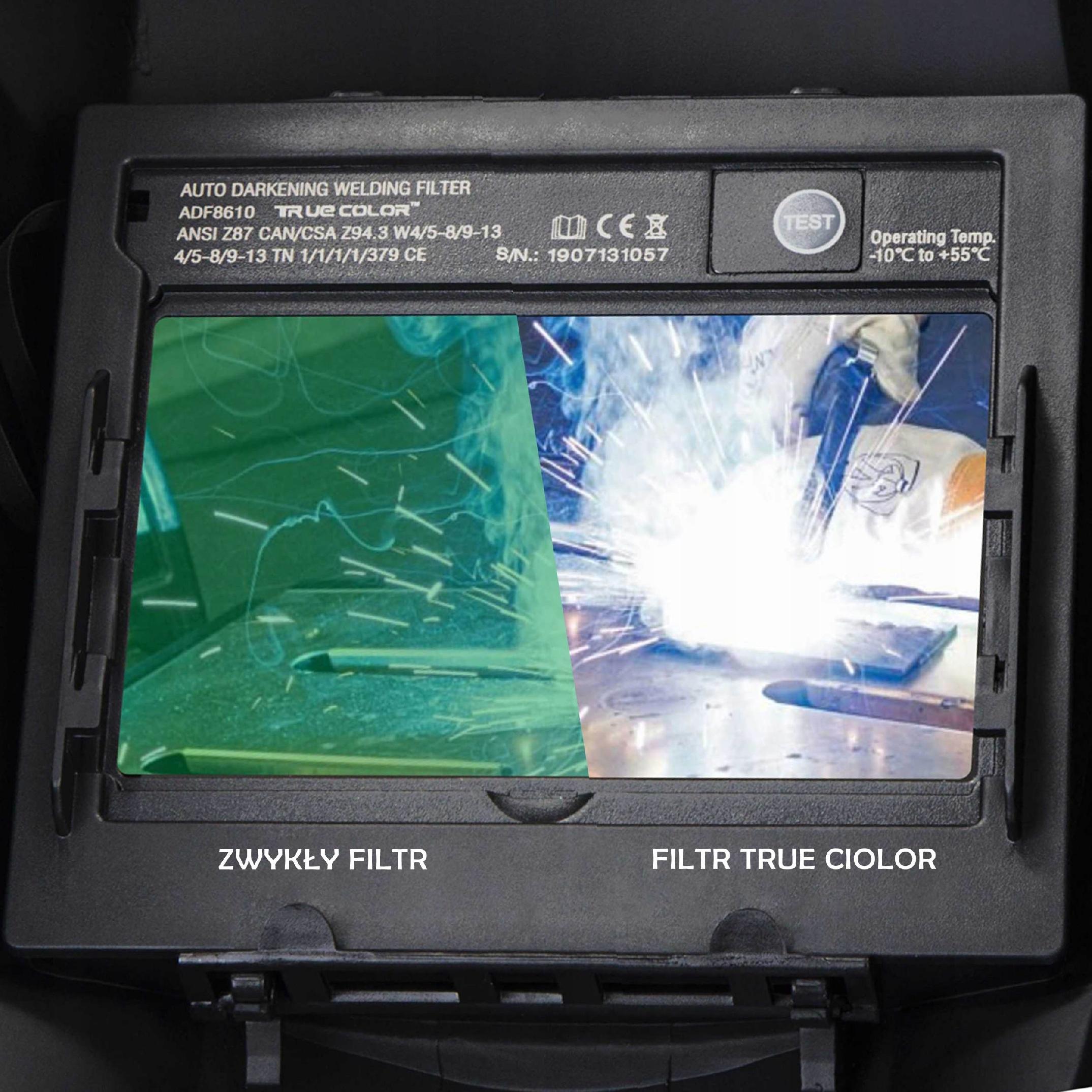 Найбільшою перевагою маски є фільтр СПРАВЖНІЙ КОЛІР - ПРИРОДНІ КОЛЬОРИ, який робить об'єкти яскравішими та різкішими, роблячи їх більш реалістичними. Використання нової технології TRUE COLOR дозволяє краще контролювати зварювальні роботи та забезпечує ідеальну видимість. Порівняння класичного фільтра та справжнього кольору показано на малюнку нижче.