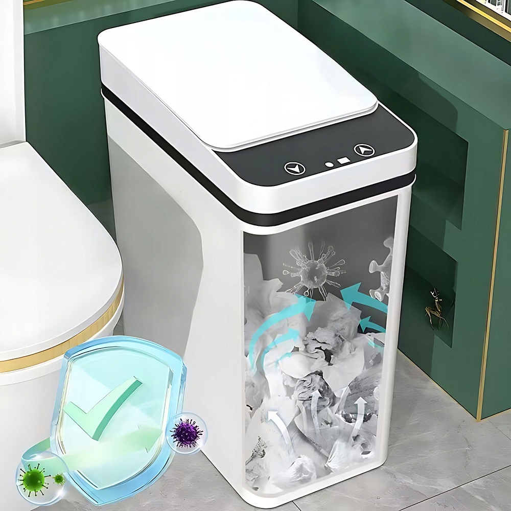 Цей кошик з датчиком руху має тонкий профіль і ідеально підходить для ванних кімнат, спалень, кухні та різних сценаріїв з обмеженим простором. Цей стрункий кошик з обкладинкою оптимально використовує вузькі прогалини. Білий сміттєвий контейнер із сенсорною системою підходить до більшості стилів інтер'єру.