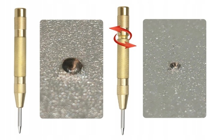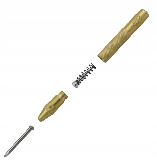 Автоматичний пуансон 125 мм, виготовлений з інструментальної сталі, призначений для пробивання невеликих заглиблень у металі, що значно полегшує точне свердління. Особлива конструкція центрального пуансона позбавляє від необхідності використання молотка. Автоматичне маркування здійснюється завдяки міцній внутрішній пружині, яка переміщує голку