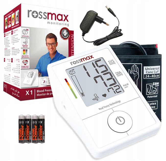 Тонометр X1 - нова модель відомої швейцарської компанії Rossmax. Він характеризується новим дизайном, чітким, великим дисплеєм і багатим обладнанням. Датчик руху, який нагадує користувачеві залишатися нерухомим під час вимірювання, індикатор правильного розміщення манжети та джерело живлення. Завдяки використаним технологіям він надійний, точний і простий у використанні. Ідеально підходить для використання в будь-якому домі.