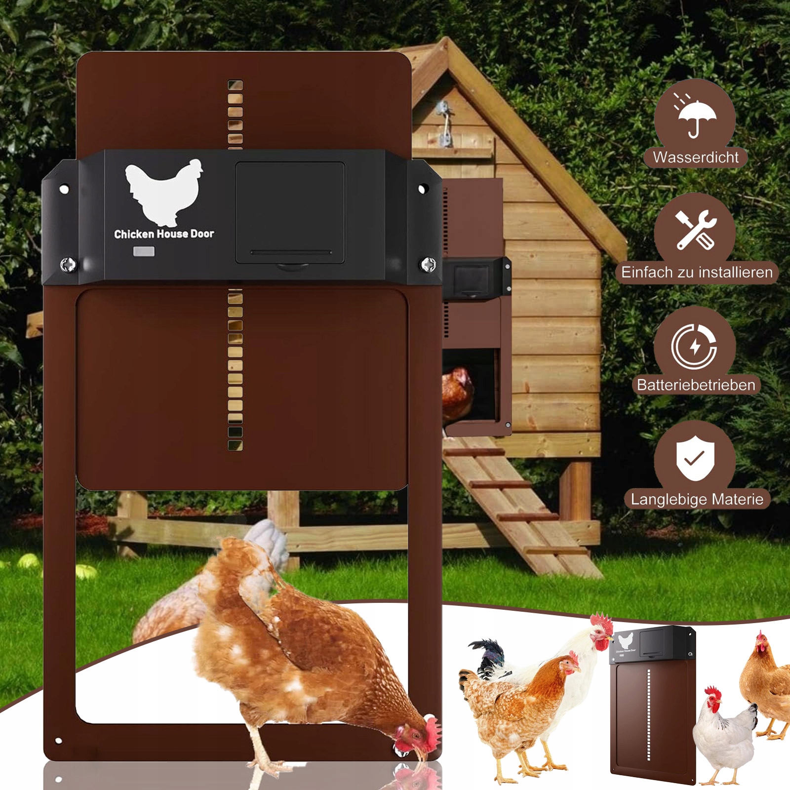 【Двері Purcor з датчиком світла】 Пекло двері керують датчиком світла. Коли стане темно, двері автоматично зачиняться, а коли вона темніє, двері автоматично відкриваються. Вам не доведеться виходити на двір, щоб відкрити курячий Купер самостійно.