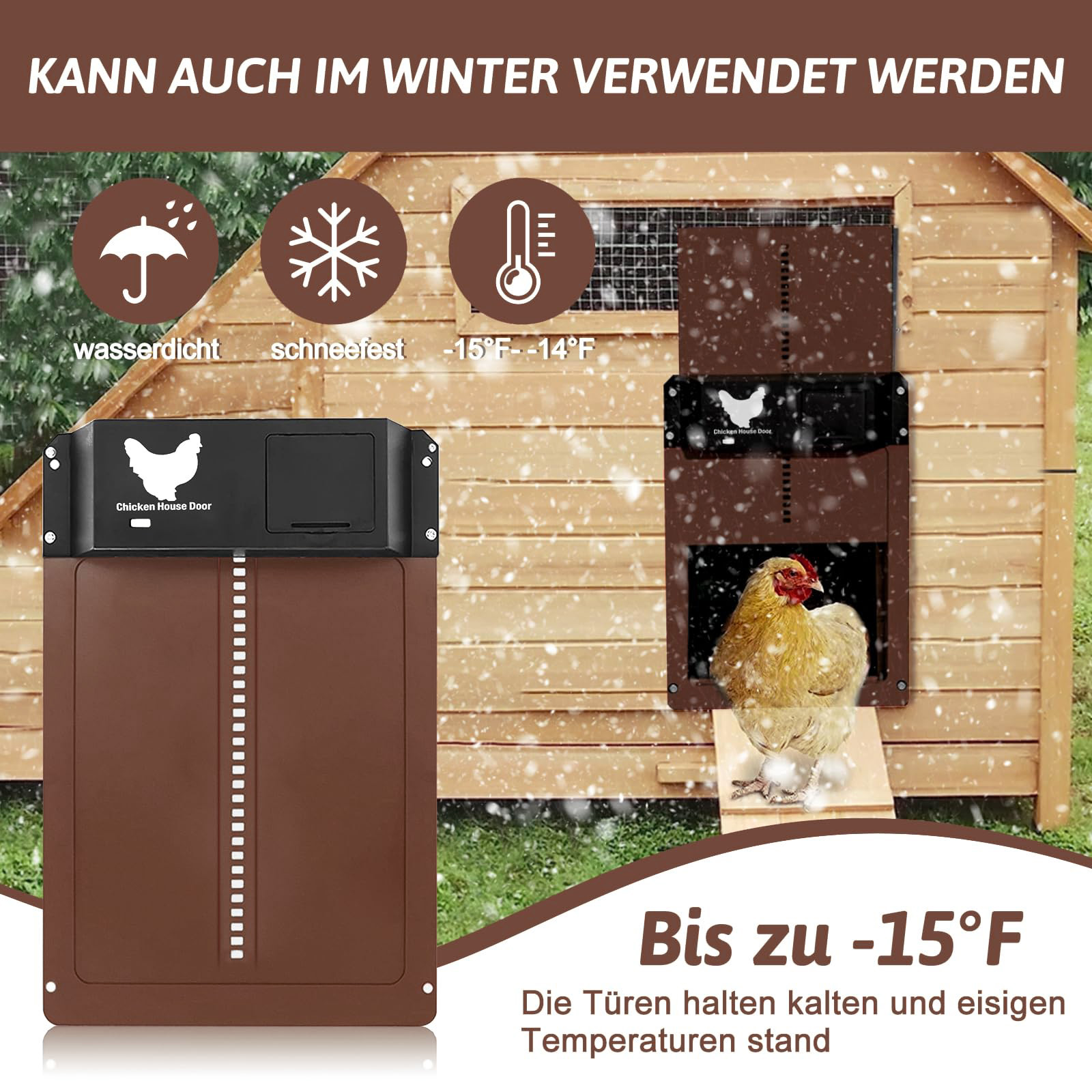 【Матеріал високої якості】 Автоматичні двері до курки виготовляються з високоякісної пластику, що непросто згинається або деформація, витримує температуру від -22 ℉ до 131 ℉, навіть у негоду, ви можете використовувати її нормально і безпечно. Кури використовуються у дворі та на фермах, він підходить для більшості птиці, таких як кури та качки, а також можна використовувати, якщо ваші коти та собаки невеликі.