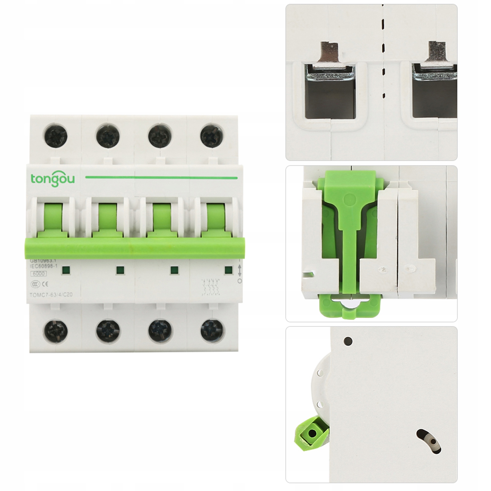 TOMC7-63 4P C тип 6KA Повітряний вимикач захисту від витоку мініатюрного автоматичного вимикача (20 A)