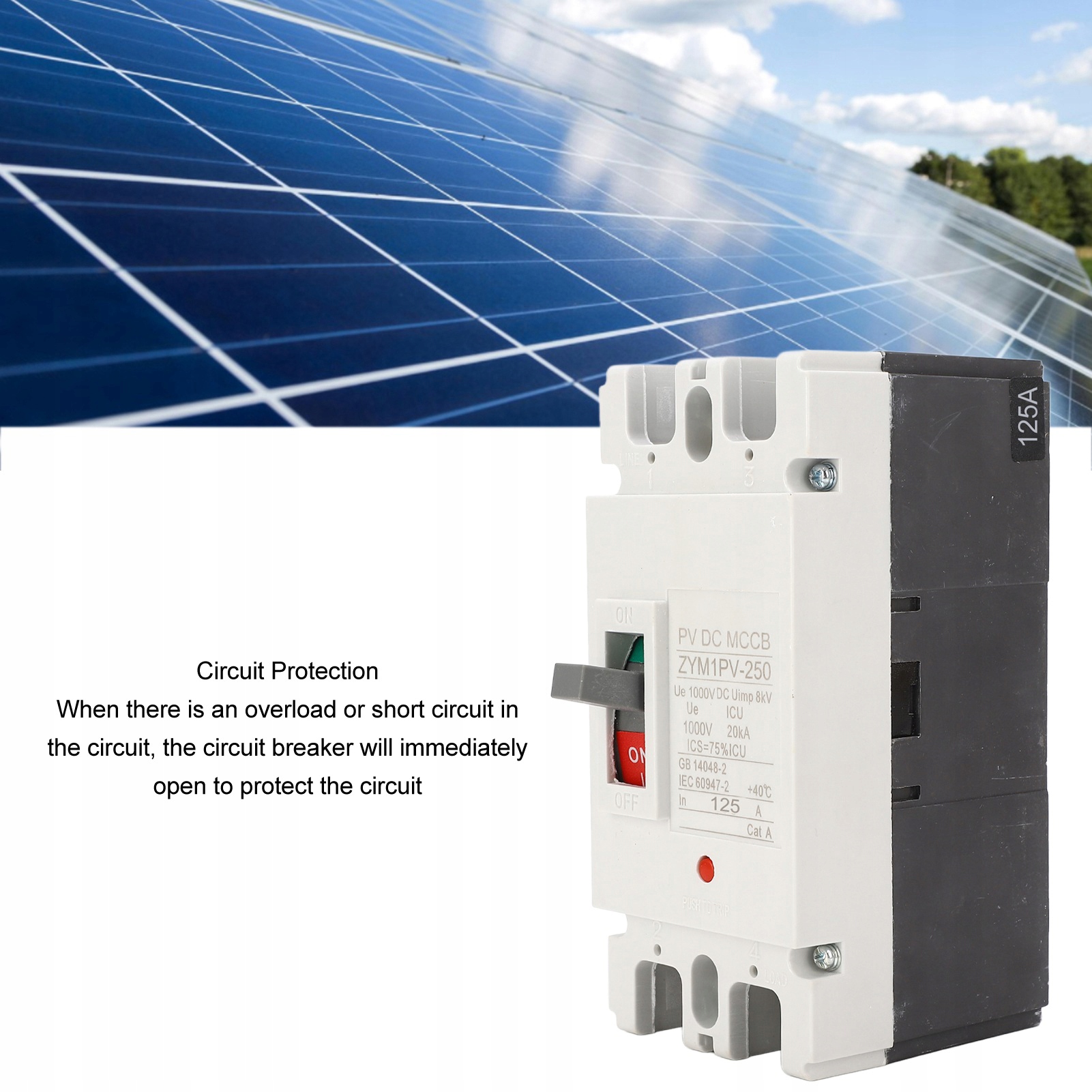 3. Срібний контакт: сонячний автоматичний вимикач MCCB невеликий за розміром і використовує срібний контакт із номінальним струмом 125 А та короткою дугою.