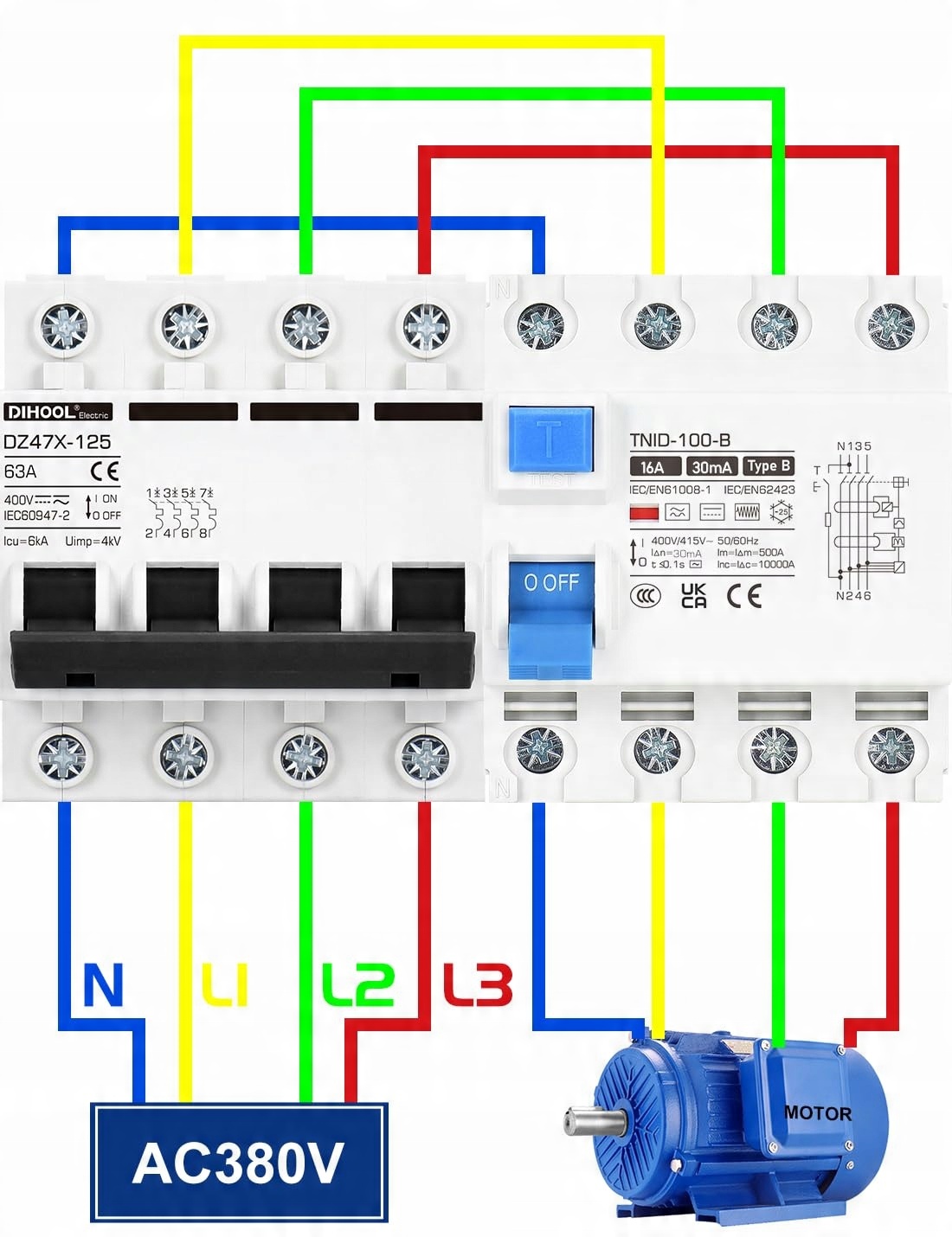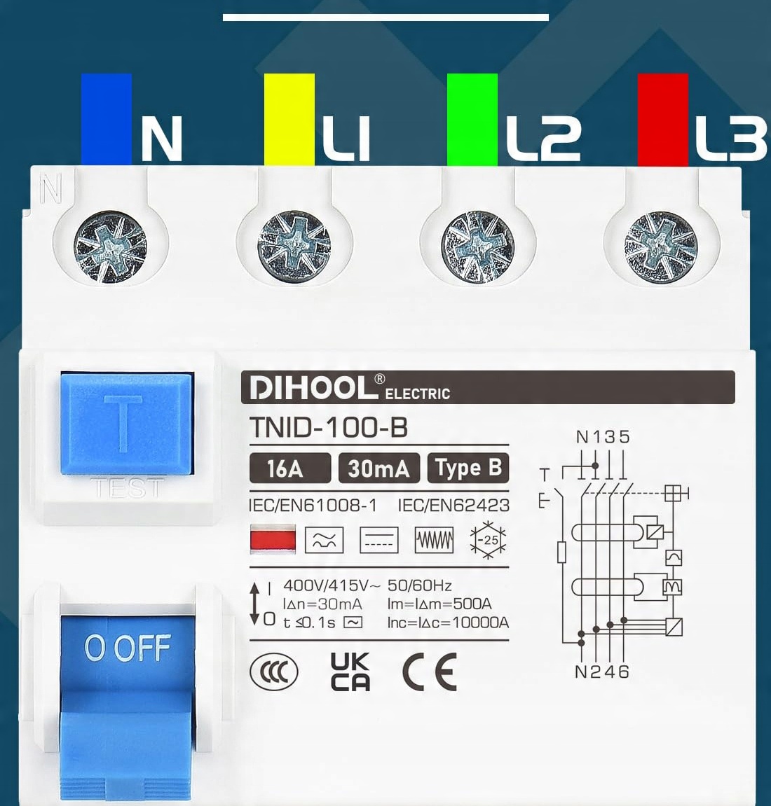 Автоматичний вимикач DIHOOL UZO тип B, DIN 4 полюси 16A 30mA