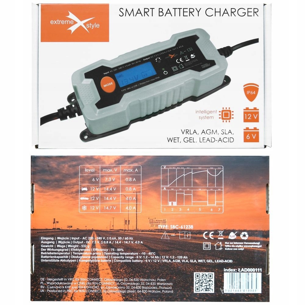 Extremeestyle | Інтелектуальний випрямляч акумулятора 6В 12В | VRLA, AGM, VLA, SLA, EFB, WET, GEL, свинцево-саговина