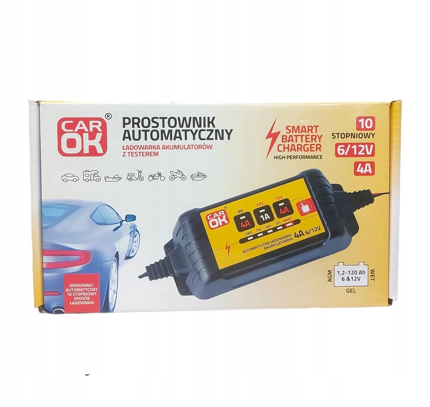 Автоматичний випрямляч 6/12 В 4А 10-ступінчастийавтомат з тестером від Car OK - це передовий інструмент, який не тільки заряджає акумулятор, а й контролює його стан, забезпечуючи комплексний догляд за системою живлення автомобіля. Завдяки інноваційному підходу та використанню новітніх технологій, зарядний пристрій пропонує ряд функцій, які роблять його незамінним інструментом як для професіоналів, так і для домашніх користувачів.
