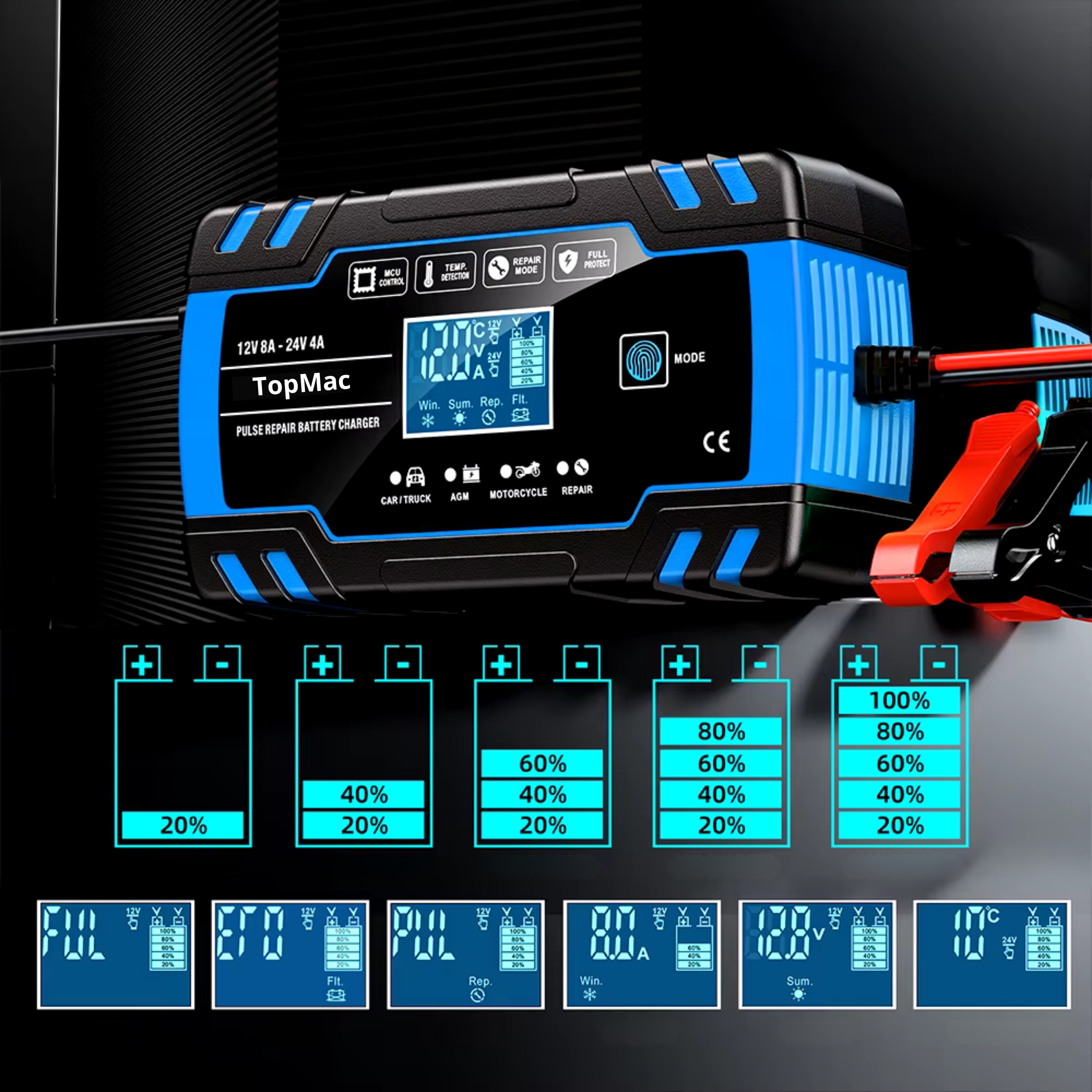 автоматичний випрямляч автомобіля для акумулятора з функцією ремонту 8a