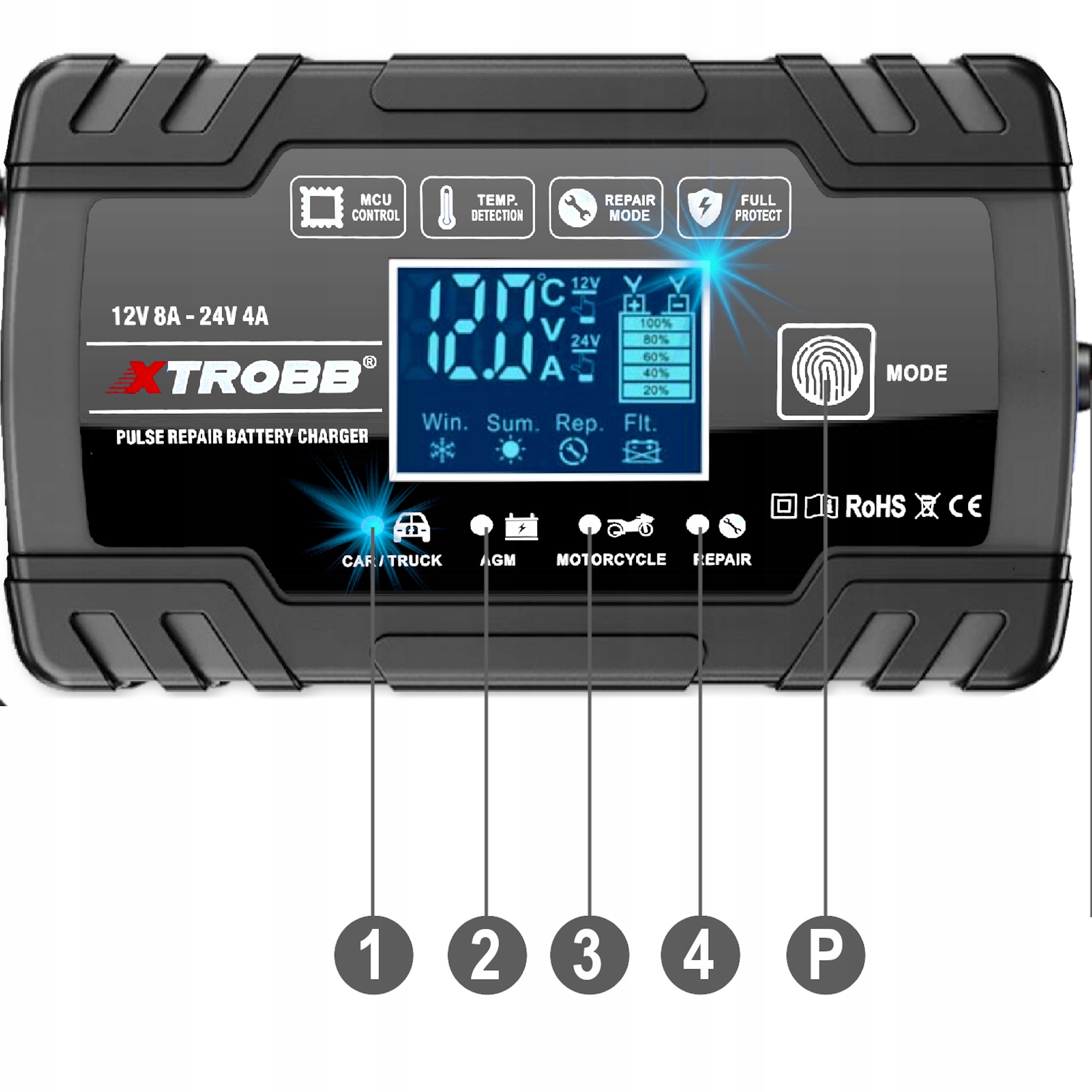 Сильний, автоматичний розумний випрямляч з функцією відновлення акумулятора