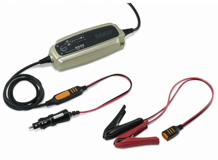 Зарядний пристрій BMW Motorrad — це зарядний пристрій, адаптований для заряджання від 1,2 А·год до 160 А·год і оптимізований для заряджання свинцево-кислотних і літій-іонних акумуляторів AGM 12 В. Тому його можна використовувати для будь-якого мотоцикла BMW з 12-вольтовою батареєю. Відповідний адаптер дозволяє заряджати через розетку 12V. Зарядний пристрій пропонує повністю автоматичний 8-етапний процес заряджання за допомогою змінного струму. Він захищений від короткого замикання, іскор і зворотної полярності, а також захищений від пилу та бризок (IP65). Процес заряджання можна контролювати, відображаючи стан заряджання.