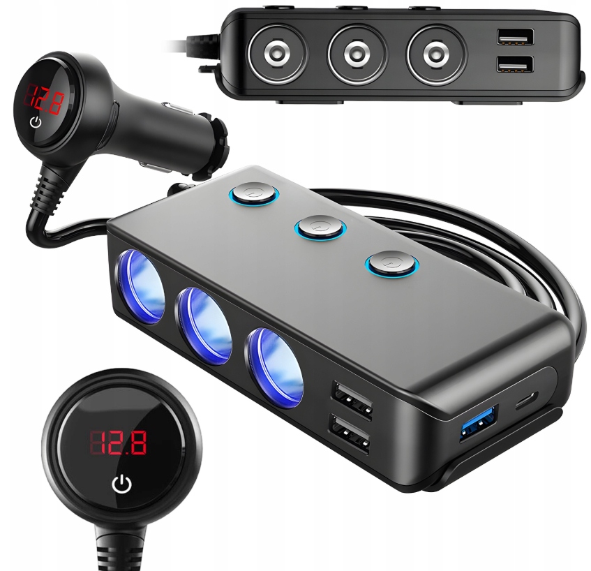 Ви хочете, щоб усі пристрої стягували під час подорожі? Ця легша розетка для сигарет 12-24В з 3 портами швидкого заряду USB 3.0 та портом USB-C 120 Вт-це комбінація якості , функціональності та надійності , яка змінить ваш автомобіль на мобільний центр зарядки! 🚗 Оснащений трьома сигаретними запальничками та чотирма портами зарядки (3x USB + 1x USB-C), дозволяє одночасне постачання смартфонів, планшетів, навігації GPS або автомобільних камер. Вбудований світлодіодний дисплей показує напругу акумулятора в режимі реального часу, що допомагає контролювати стан транспортного засобу.
