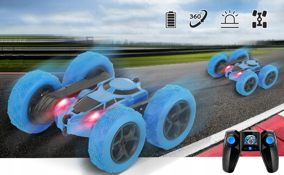 Наш автомобіль RC -трюк був створений для дітей, які люблять пригоди та емоції! Він може обертати 360 градусів і їздити по обидва боки, забезпечуючи захоплюючий та унікальний досвід для дітей і навіть дорослих. Завдяки своїм універсальним властивостям -дорогою, наш автомобіль з віддаленим керуванням може подолати різні типи місцевості, включаючи пісок, газони, скелясті дороги та інші, що робить його ідеальним для виконання акробатики та рас у будь -якому місці.