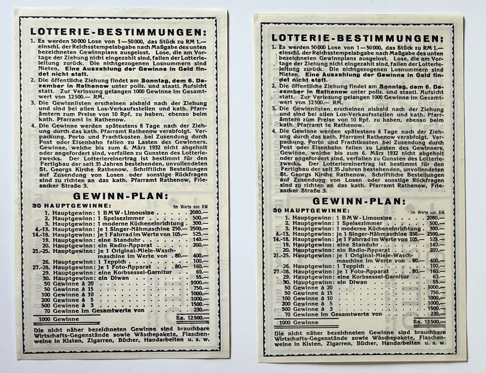 Опис Тема: Чотири лотерейні квитки на будівництво церкви. Основна нагорода автомобіля BMW та 1000 інших нагород. Значення однієї долі 1RM. Приємна прозора упаковка та порожній друк для передачі. Прекрасний і рідкісний набір