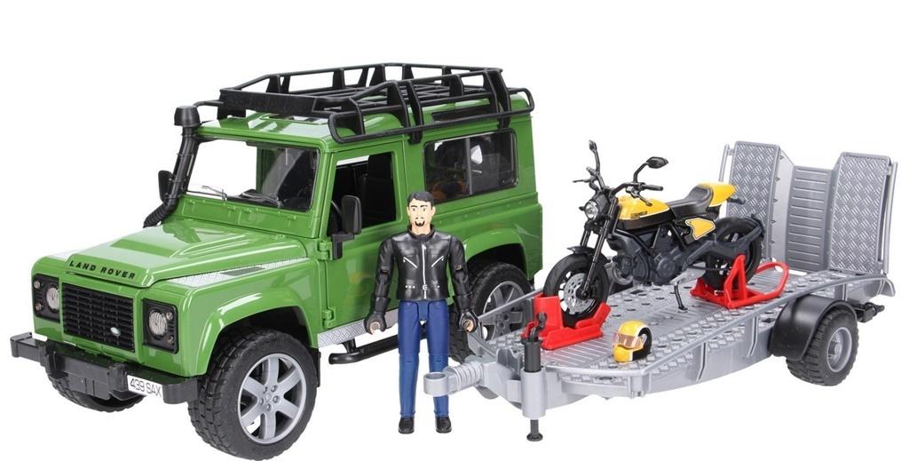 Іграшка Land Rover Defender з причепом з мотоциклом і фігуркою мотоцикліста
