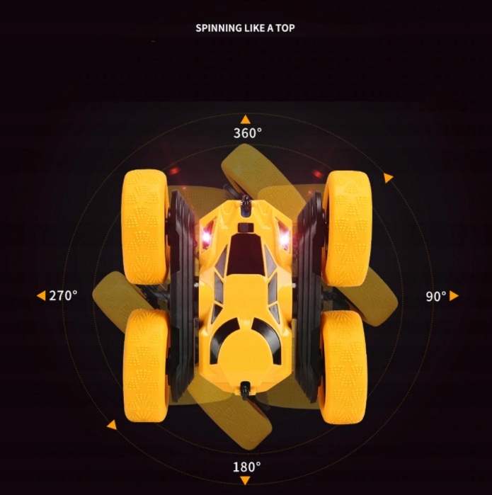 * Обертання на 360 градусів і обертання в усіх напрямках. Розроблений з двосторонньою конструкцією, ним можна керувати навіть при обертанні на 180 градусів вгору або вниз, без зупинки, навіть перекидаючись. Нескінченна розвага для дітей.