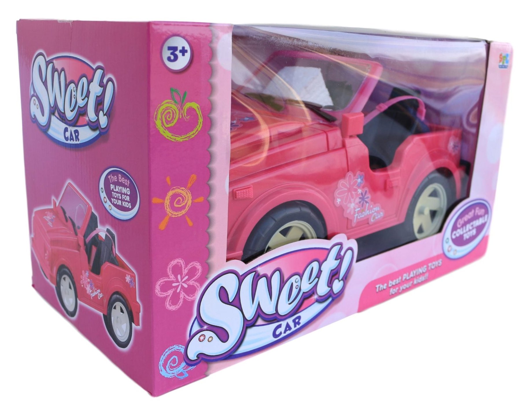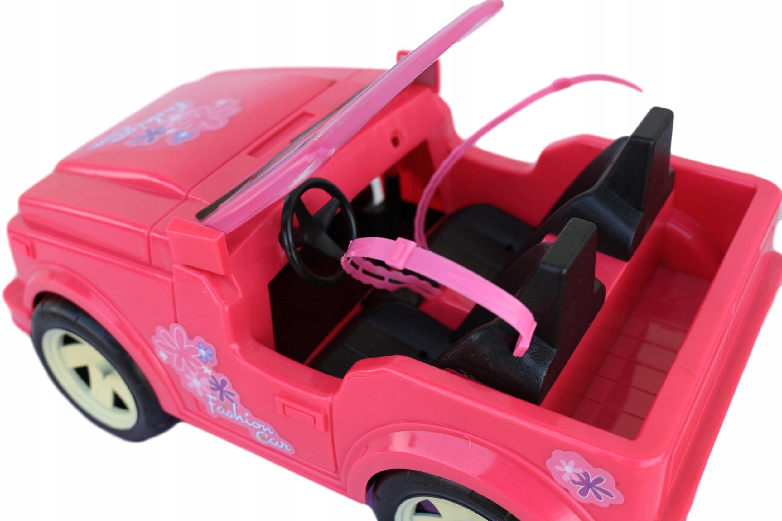 Великий рожевий Джип довжиною 34 см, зроблений для ляльок, має 2 місця: для водія та пасажира. . У транспортного засобу немає металевих елементів і джерела живлення, тому з ним можна грати в піску та воді.