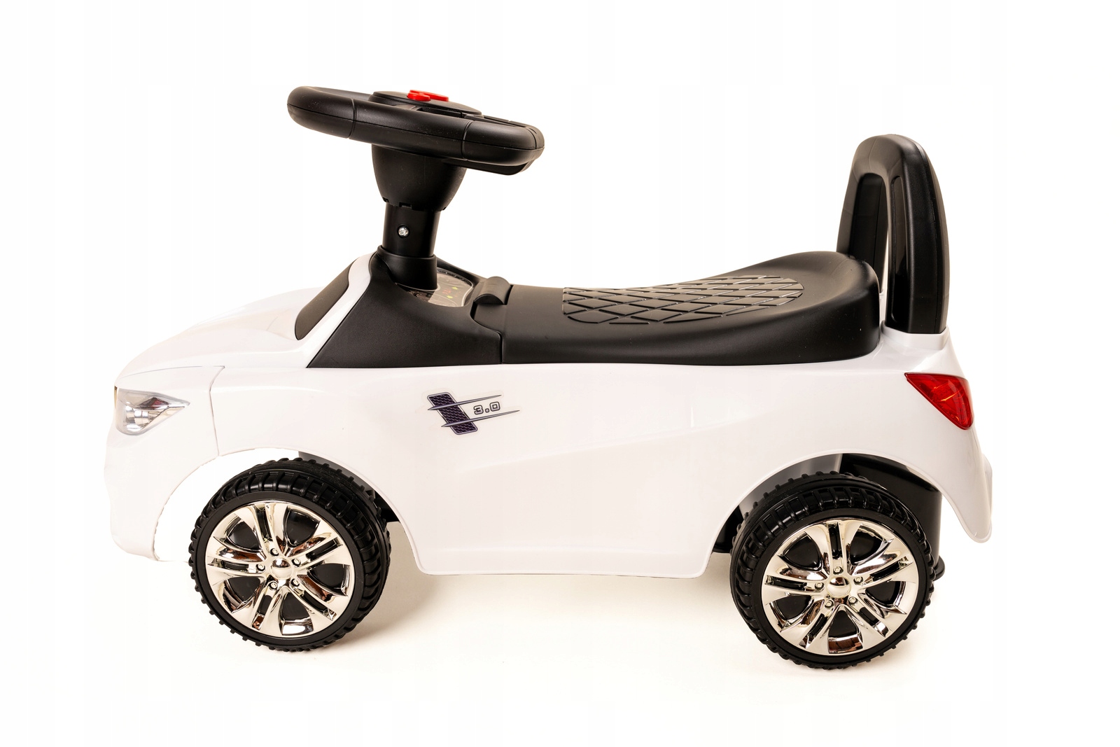 Безпека на першому місці - дизайн, що турбується про найменших, із додатковим захистом від падіння забезпечує комфорт як для дитини, так і для батьків. Мультимедійне кермо та стильні елементи, такі як диски, надають автомобілю характеру, а відсік під сидінням є чудовим місцем для зберігання дрібниць. Це транспортний засіб, який забезпечить години активних розваг на свіжому повітрі та допоможе розвинути координацію та моторику.