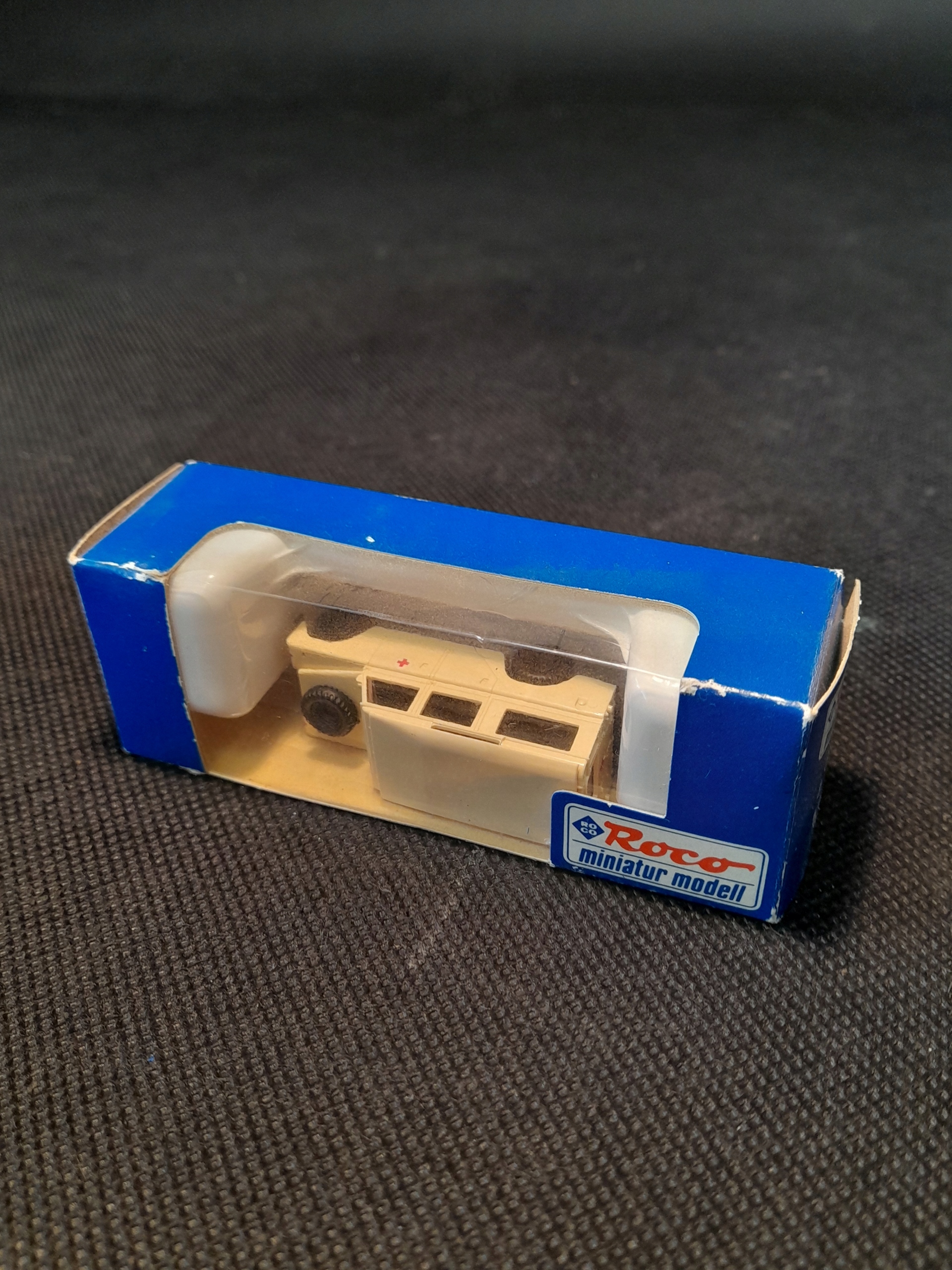 Продаж невеликий автомобіль для моделі роко. Упаковка, видна на знімках, упаковка є запиленою і має подряпини. Елемент не має видимих дефектів. Невідомо, чи використовували його.