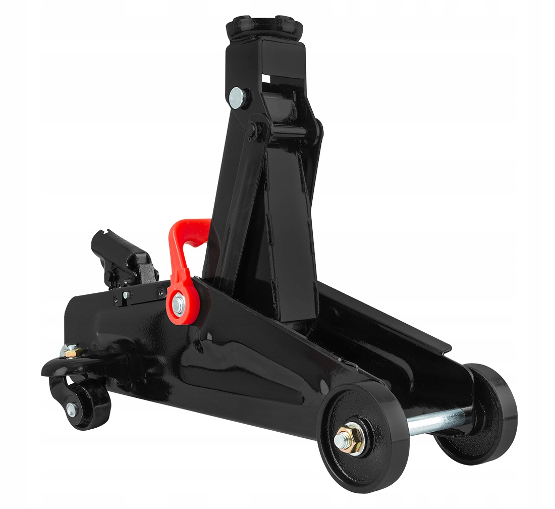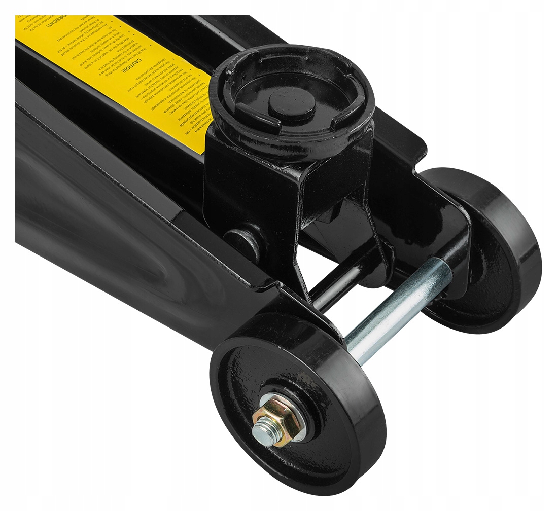 Завдяки правильно розробленим колесам цей домкрат можна легко встановити в будь-якій точці під автомобілем. Їх конструкція значно полегшує маневрування цим інструментом. Їх великий діаметр дозволяє легко керувати підйомником навіть на нерівних поверхнях.