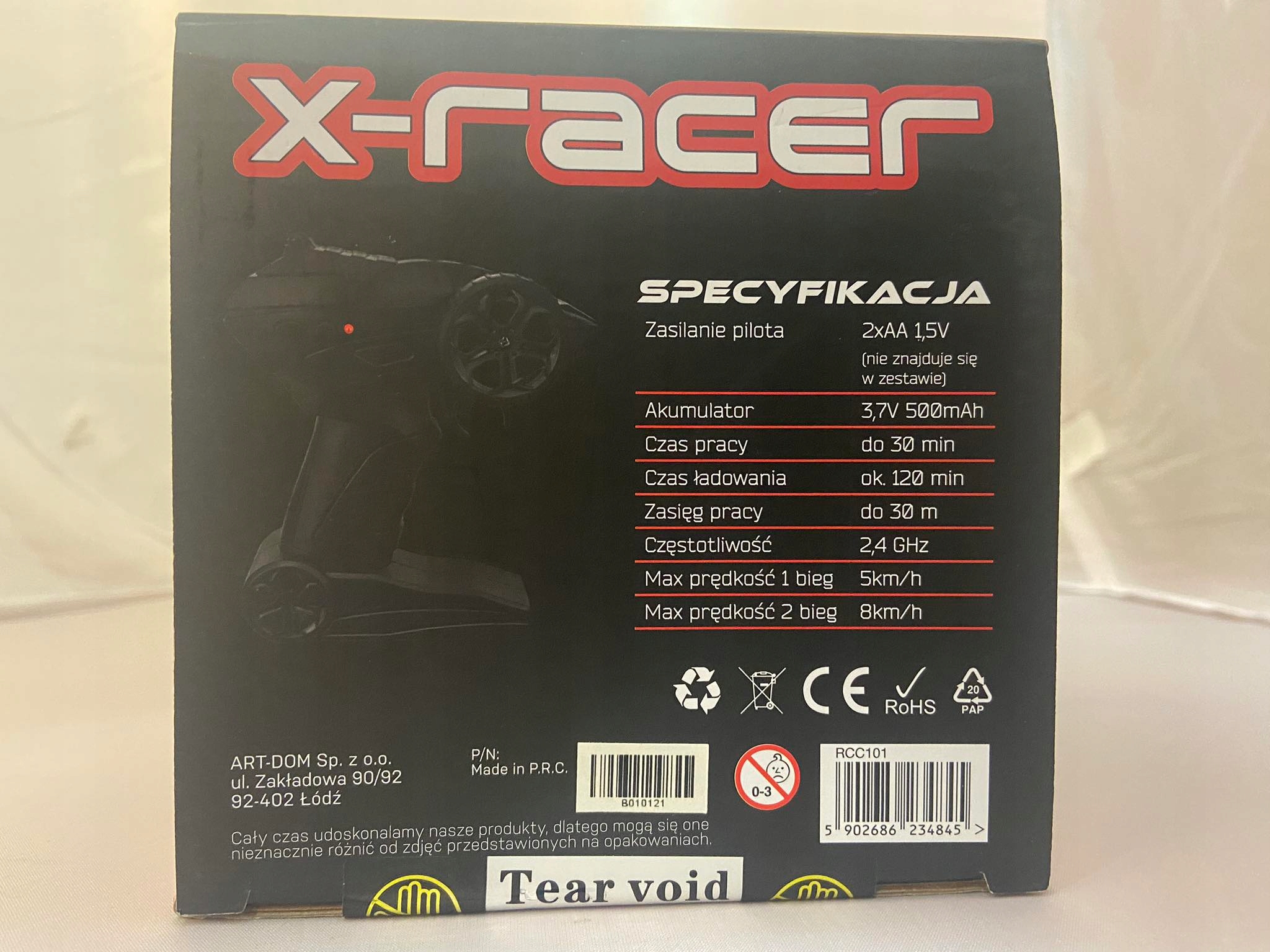 Настав час для захоплюючого ралі, і ви станете переможцем! Все, що вам потрібно зробити, це дотягнутися до гоночного автомобіля X-Racer RCC101 з дистанційним керуванням. Цей автомобіль з підвіскою, адаптованою до більшості типів поверхонь, у поєднанні з високопродуктивними шинами дозволить вам отримати максимальне задоволення від водіння на будь-якій місцевості. Тим паче, що цей транспортний засіб вирізняється розгоном до 8 км/год, потужним двигуном із низьким енергоспоживанням, великим запасом ходу та надзвичайно точним пілотом. Керувати ним, безсумнівно, принесе задоволення кожному любителю гострих відчуттів і швидкої їзди.